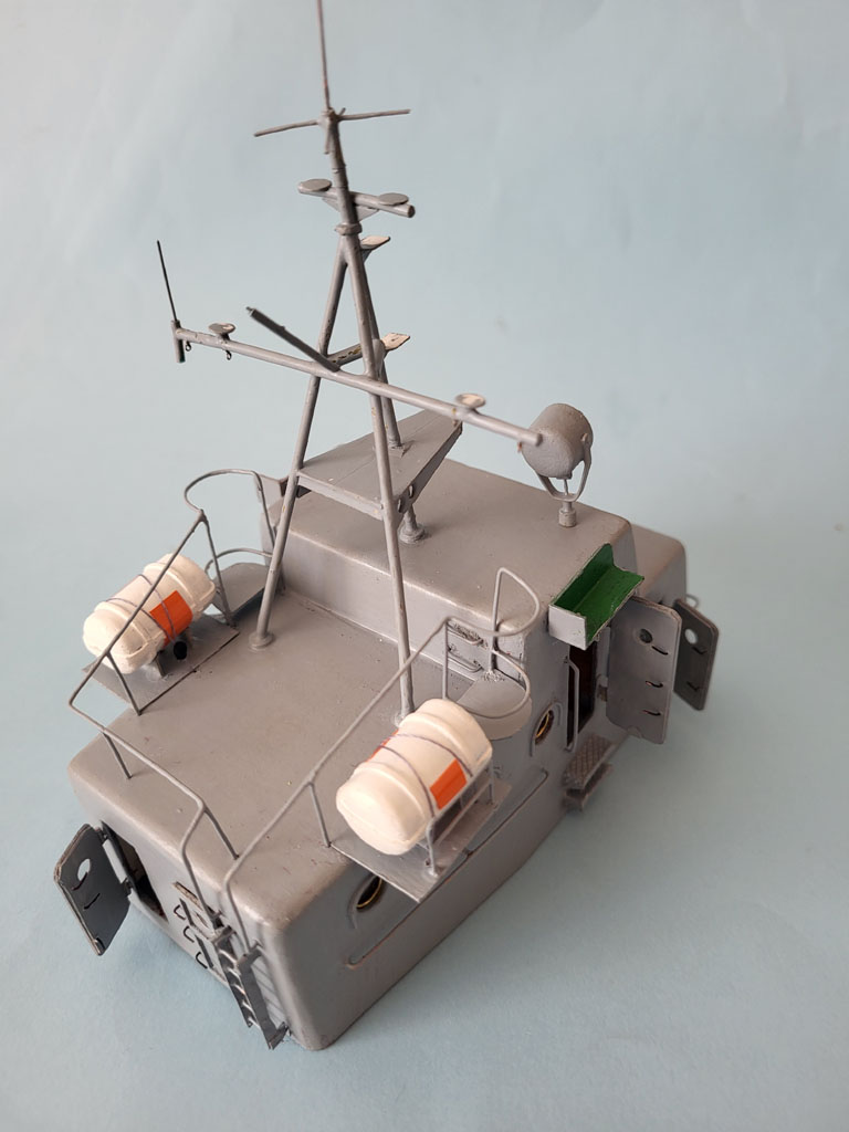 Trochę czasu upłynęło trzeba coś pokazać . Z jednej strony jest kuchnia to trzeba było dorobić "kibelek" Porobiłem wsporniki nadburcia oraz zamontowałem drzwi i osłony światła pozycyjnego . Zaczęta "choinka" (postawiona tylko do fotki)