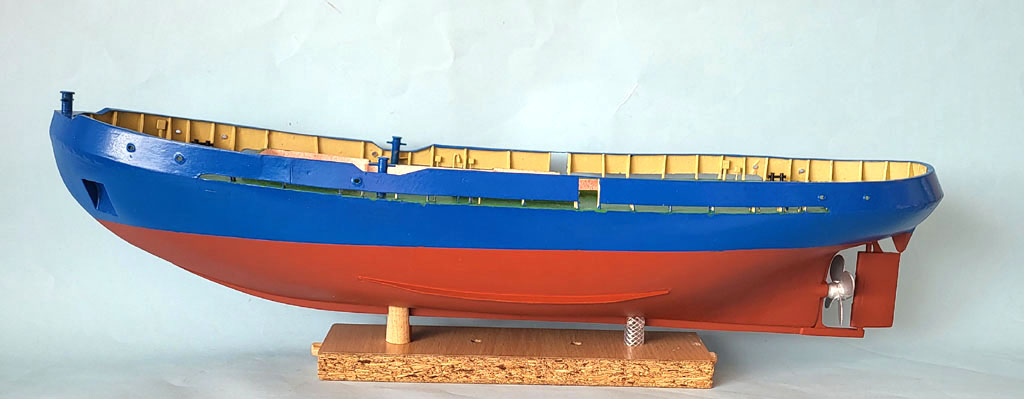 Tym razem trochę było zabawy z kadłubem . Wklejona stępka ,ster oraz zamocowane nadburcie wraz ze wspornikami