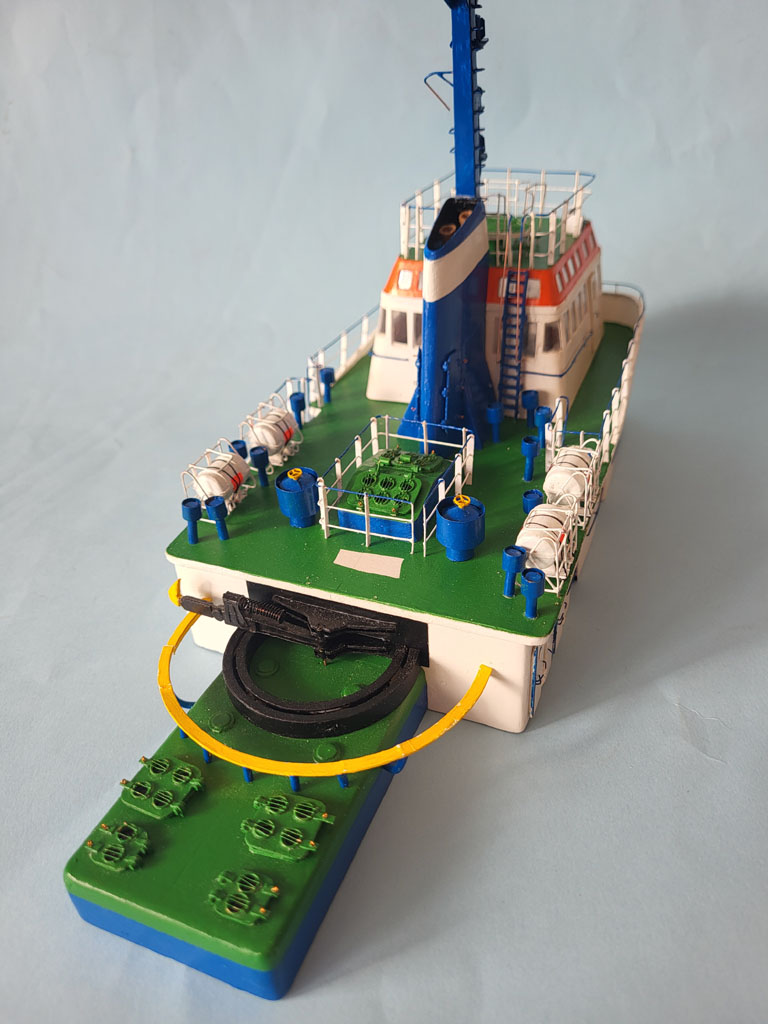 To co ulepiłem zamocowałem na pokładzie . Zrobilem wywietrzniki ,stojaki na tratwy i oczywiście tratwy