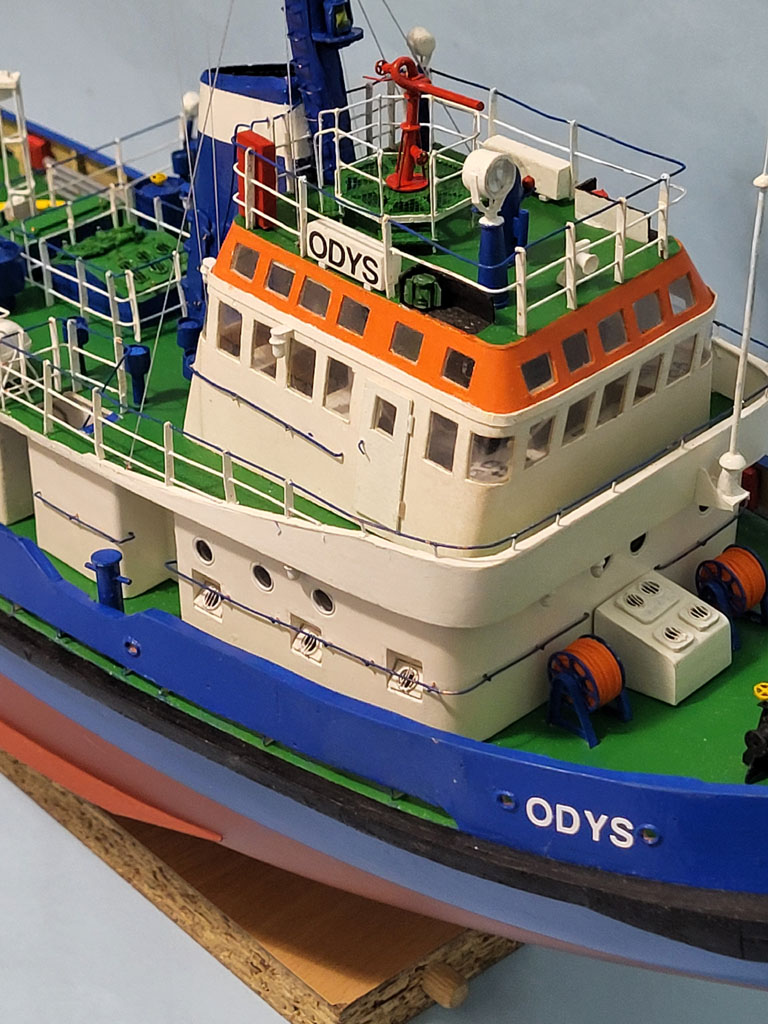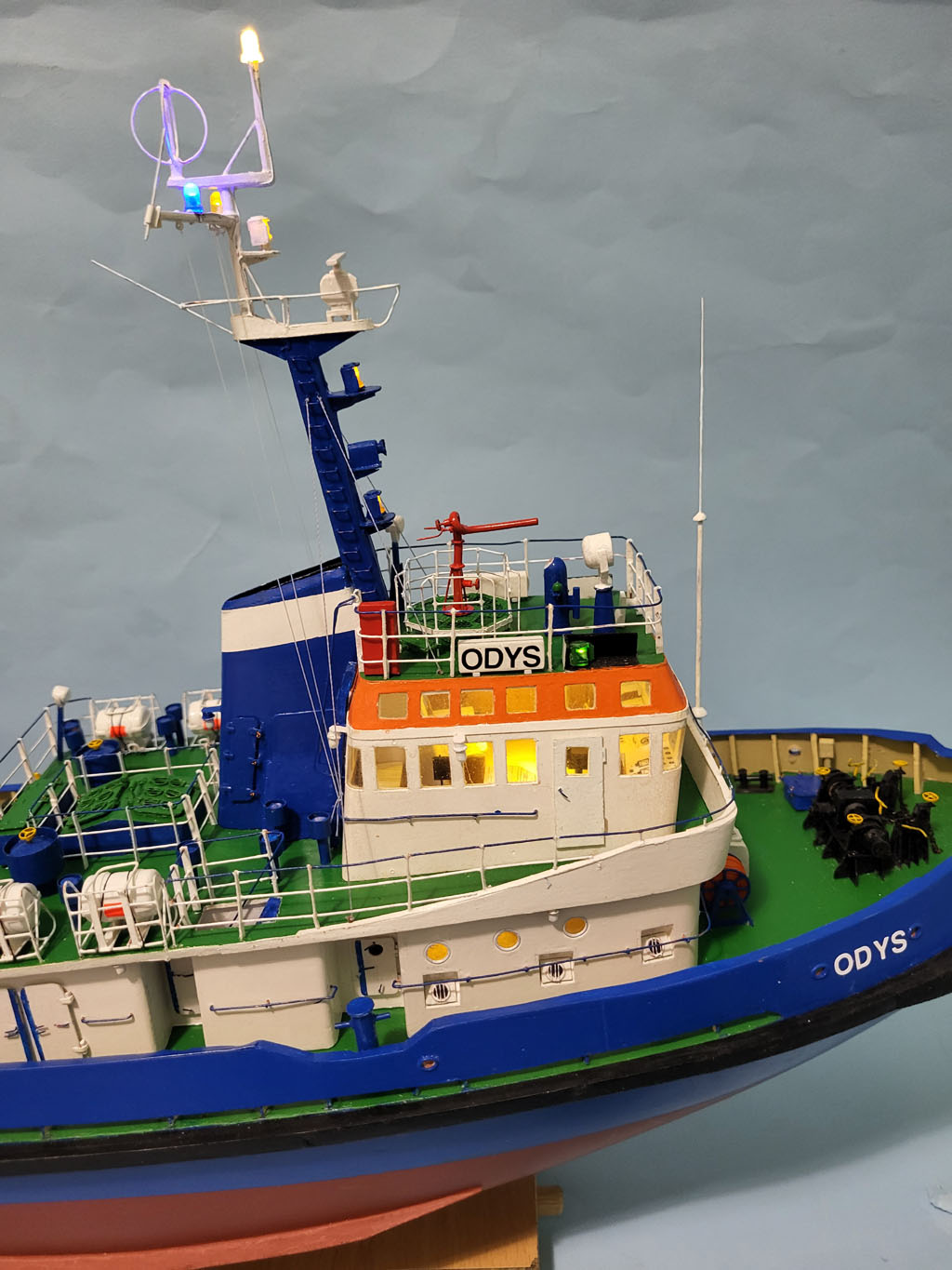 Przeglądając internet w poszukiwaniu fotek ODYSA trafiłem na niebieskie malowanie tego holownika . Spodobał mi się ten kolor i dlatego będzie na niebiesko . Przybyły drobiazgi .Nadbudówka postawiona tylko do fotki