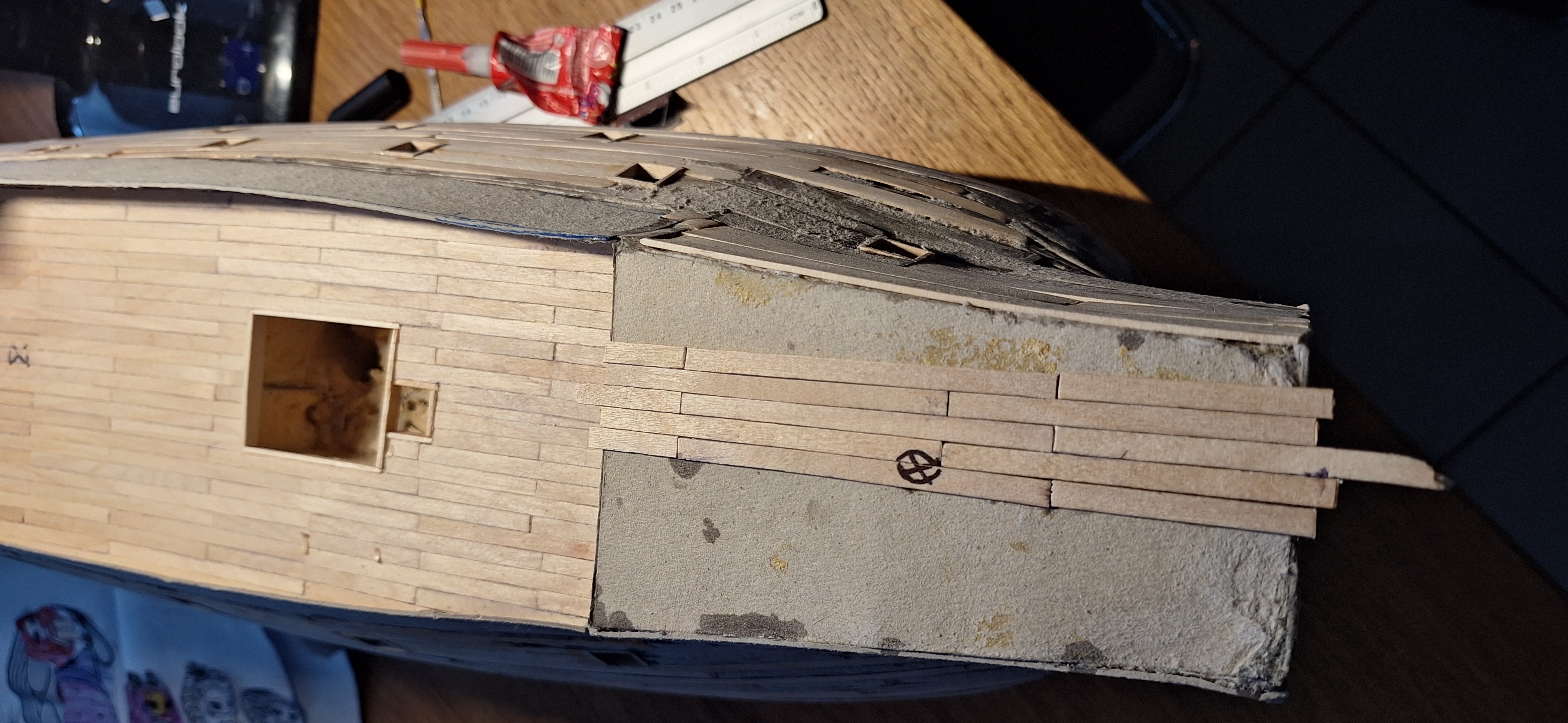 Też się nie mogę doczekać jak wjedzie właściwe poszycie. Kadłub fajnie się zaokrąglił chociaż wygląda mało estetycznie. ale tak samo robiłem przy Santa Leocadii i efekt jest .