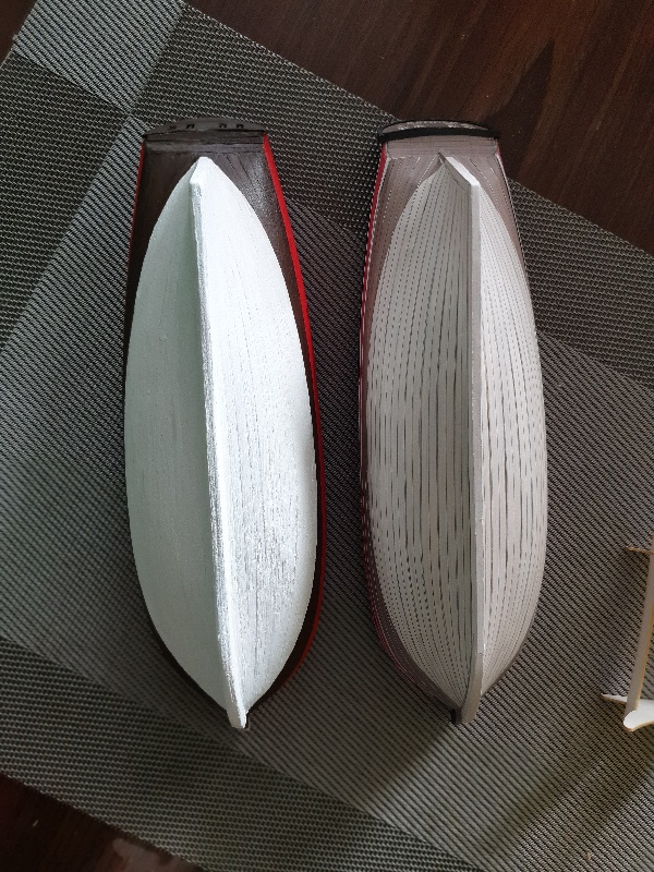 a tu świeżo po malowaniu, na chwilę obecną mam już kilka elementów wyposażenia pokładu zrobione na wersji kartonowej. jak skończę działa to przesiadam się na wersję fornirową:)