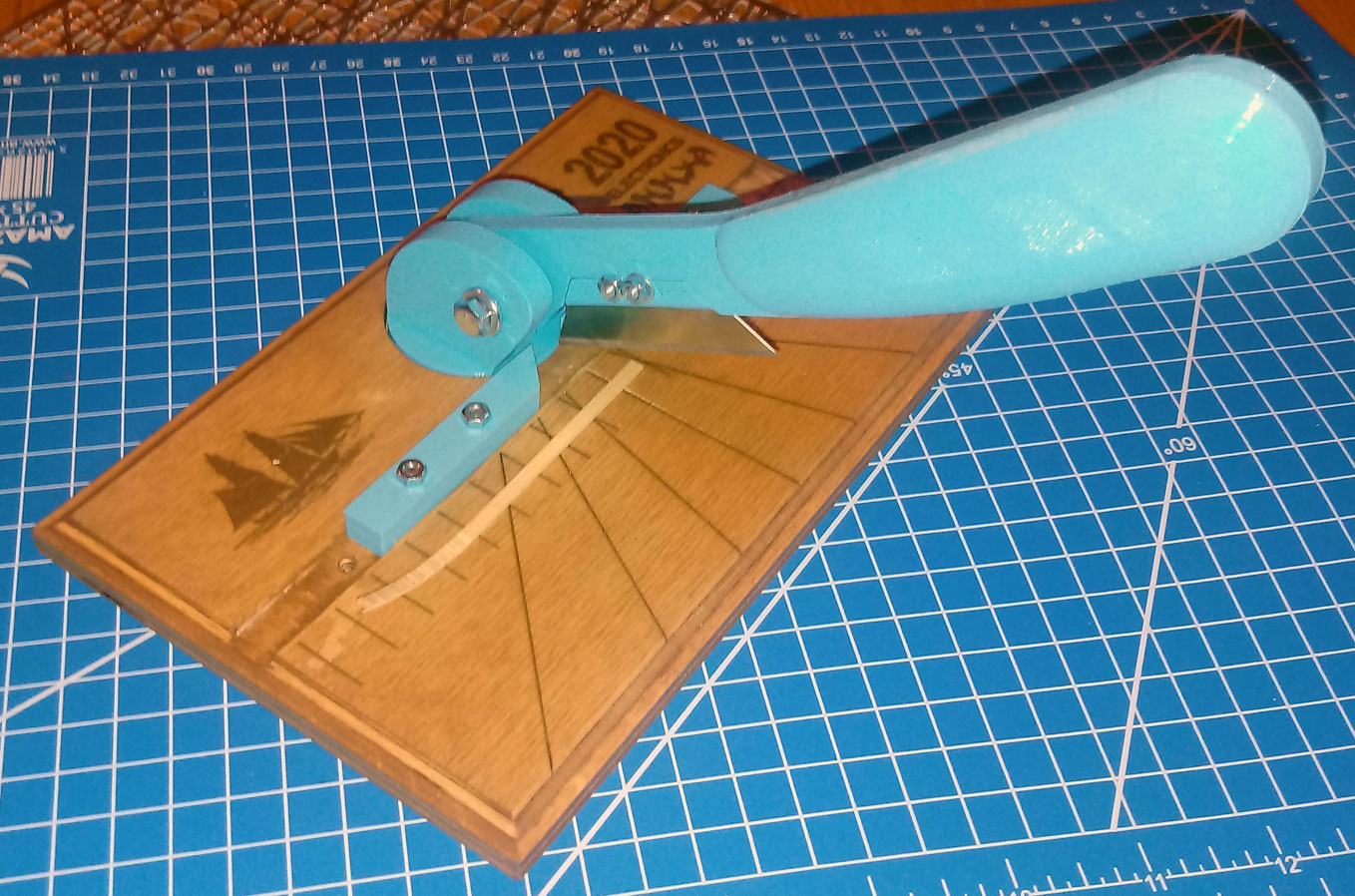 Jednak przyzwyczajenie było silniejsze. Po przeczytaniu relacji z budowy wielu modeli (szczególnie na tym forum). Postanowiłem doposażyć swoją narzędzownię w kilka niezbędnych "gadżetów". Jako pierwsza - gilotynka do listewek. Widziałem kilka gotowych modeli, które można zakupić ale postanowiłem, że wszystko sam zaprojektuję i wykonam.: Stwierdziłem także, że przyda się narzędzie umożliwiające precyzyjne gięcie drutów: Giętarka formuje zagięcia o promieniu 2,3,4,5,6,7,8,9,10,15 i 17.5 mm oraz umożliwia precyzyjne wygięcie drutów pod kątem 30, 45, 60 i 90 stopni. Możemy także wykonać łańcuch o ogniwach 2 i 3 mm.