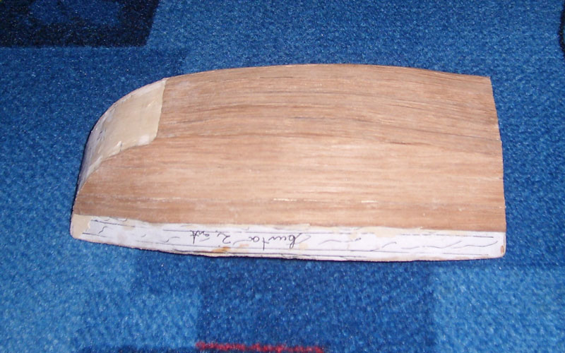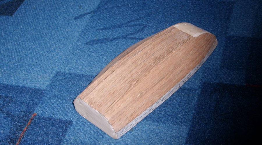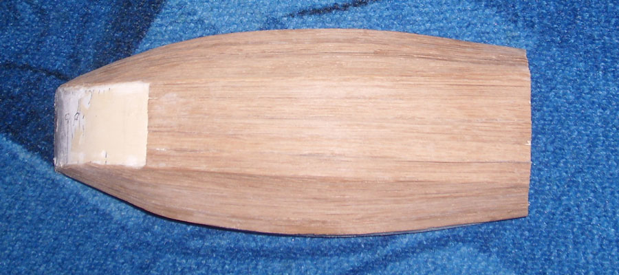 Burty, poszycia, dziób i rufę pokrywam fornirem dębowym 0.6 mm. Pokład zamierzam pokryć fornirem mahoniowym. Poniższe zdjęcia przedstawiają moją dłubaninę. Widać drobne szczeliny, ale naprawię to.