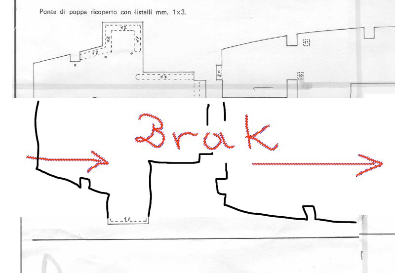 Romku, takie pytanko, odnośnie rysunku. Jak widać pokład ma kształt łuku, a łuk jest dłuższy od prostej. Ty założyłeś że pokład tworzy od dziobu do rufy linię prostą, stąd otwory na wręgi szkieletu są na tych samych liniach co otwory na wręgi w pokładzie.