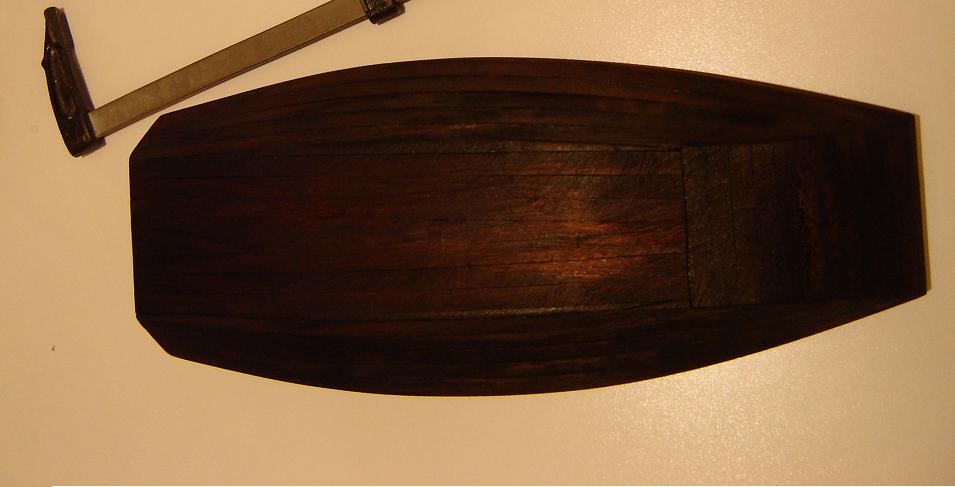 "D" ma być stara nie wiem na ile uda mi się uzyskać taki efekt , ale będę się starał . Co do projektu to : szkielet z kartonu 2mm ze starego segregatora, pokład listewki lipowe własnej produkcji bejcowane , a następnie czyszczone papierem o gradacji 150 i szczoteczką do zębów na zmianę ,a na koniec filc. A tak to wygląda na dzisiejszy wieczór
