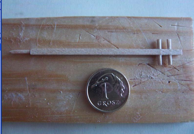 Z racji, że dostałem tymczasowy zakaz szlifowania i piłowania w mieszkaniu, musiałem użyc 2mm patyczki zamiast 1mm. Skalę zakłamałem już przy samym początku powiększając pewne elementy(świadomie) także wielkiego dramatu nie powinno być i w tym przypadku. Zapomniałem dodać: na żagle użyłem woreczka parcianego po monetach. Po wycięciu musiałem "przejechać" krawędzie lakierem bezbarwnym bo sie pruło jak stare gacie. Nic innego nie przyszło mi do głowy.
