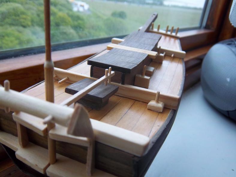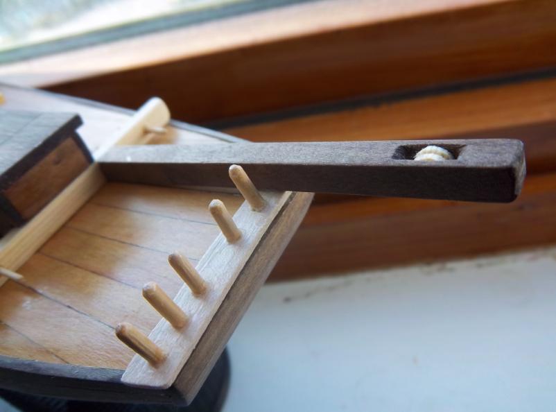 Ostatnimi czasy zauważyłem, że pośpiech nieco wkradł się do mojej pracy. Mocowanie do masztu zostało tak niedbale wykonane, że postanowiłem zrobić krok w tył. Zrobiłem je ponownie, zastanawiam się także na wykonaniem żagla również jeszcze raz. Pozatym nie jestem pewny jakie były wiązania tych żagli nie posiadam żadnych dodatkowych planów poza tymi z kogi. Ale myśle że jakoś damy rade.