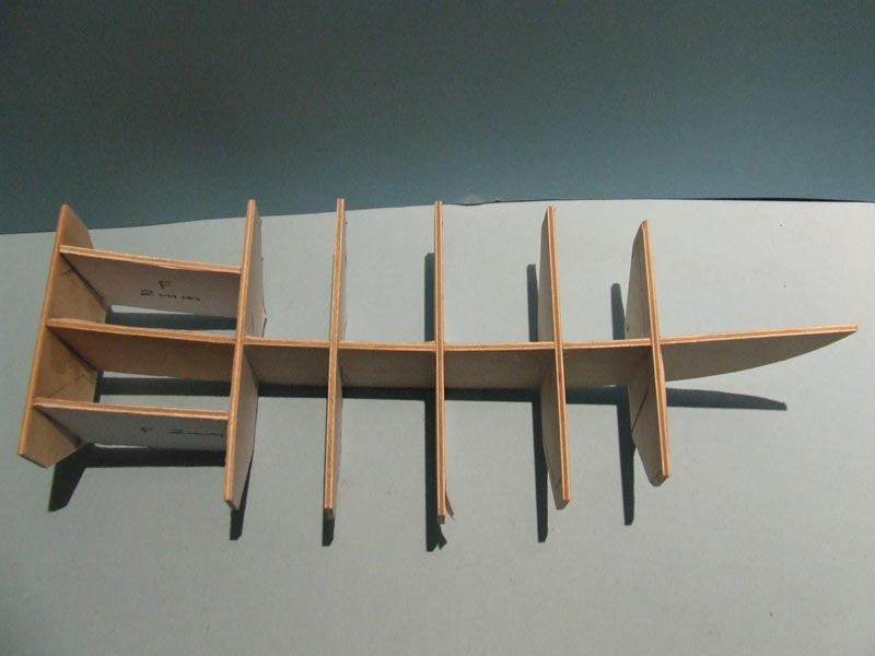 Wczoraj rozpocząłem wycinanie szkieletu. Użyłem sklejki 2mm.