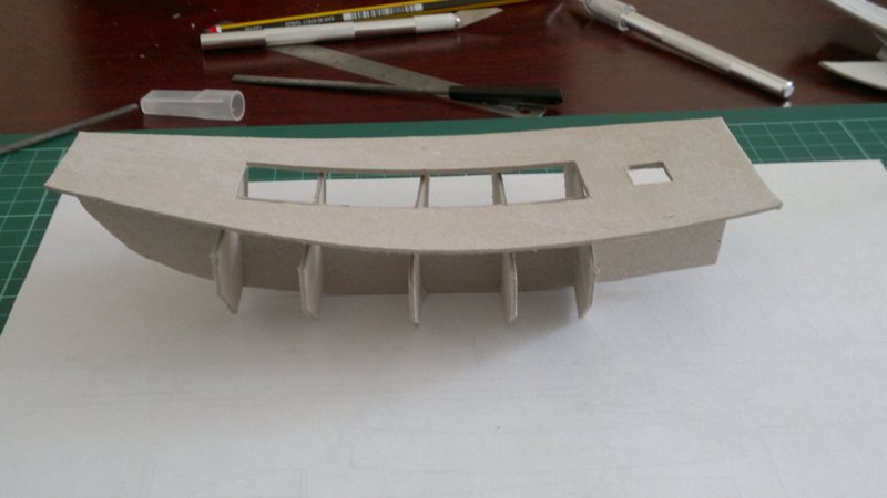 - po wycięciu miejsc na wręgi oraz samych wręg, usunąłem papier i tak to się mniej więcej prezentuje: