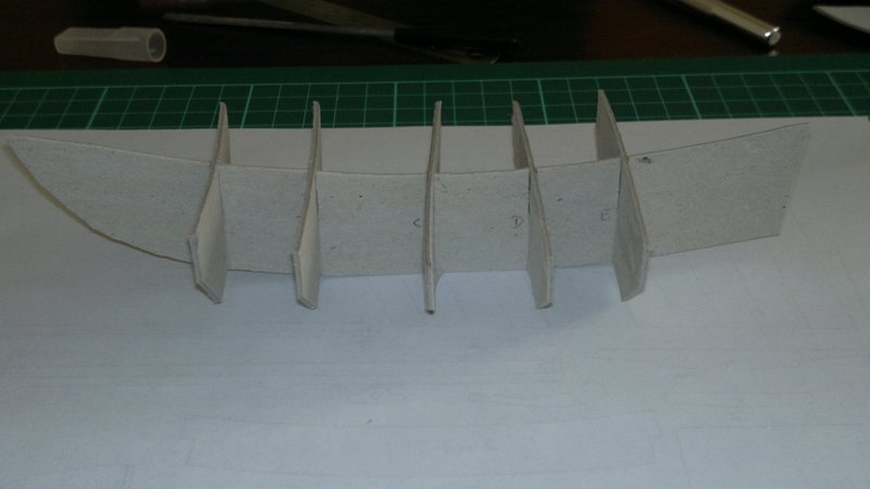 - po wycięciu miejsc na wręgi oraz samych wręg, usunąłem papier i tak to się mniej więcej prezentuje: