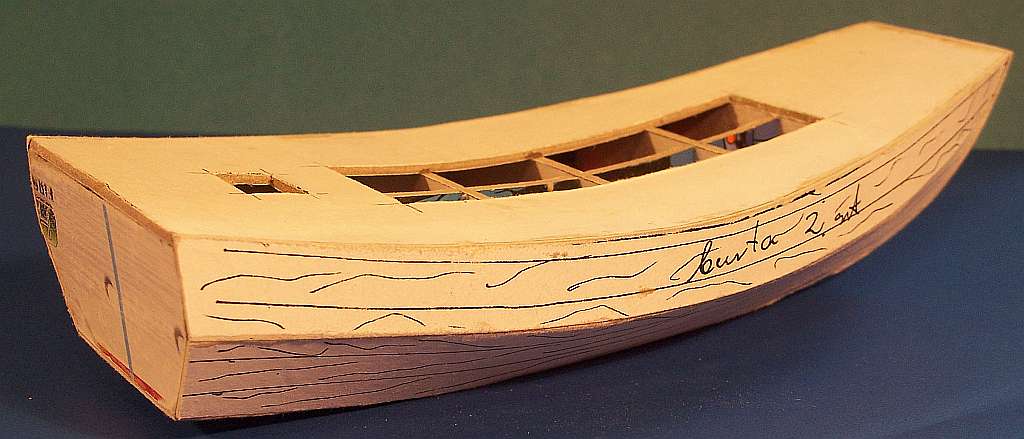 Wszystkie elementy wycięte z grubego kartonu zostały ze sobą połączone i wyglądają jak na zdjęciach, drobne nierówności na wręgach zostały zeszlifowane papierem ściernym 150. Całość jest gotowa do dalszego oklejania elementami z kartonu o grubości 1 mm.