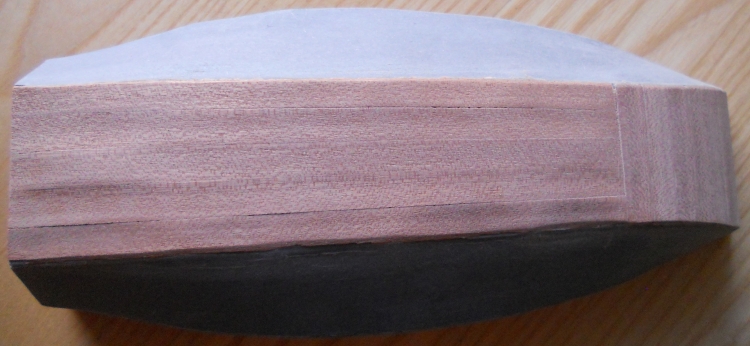 Wreszcie przyszedł fornir więc zacząłem też oklejać kadłub: