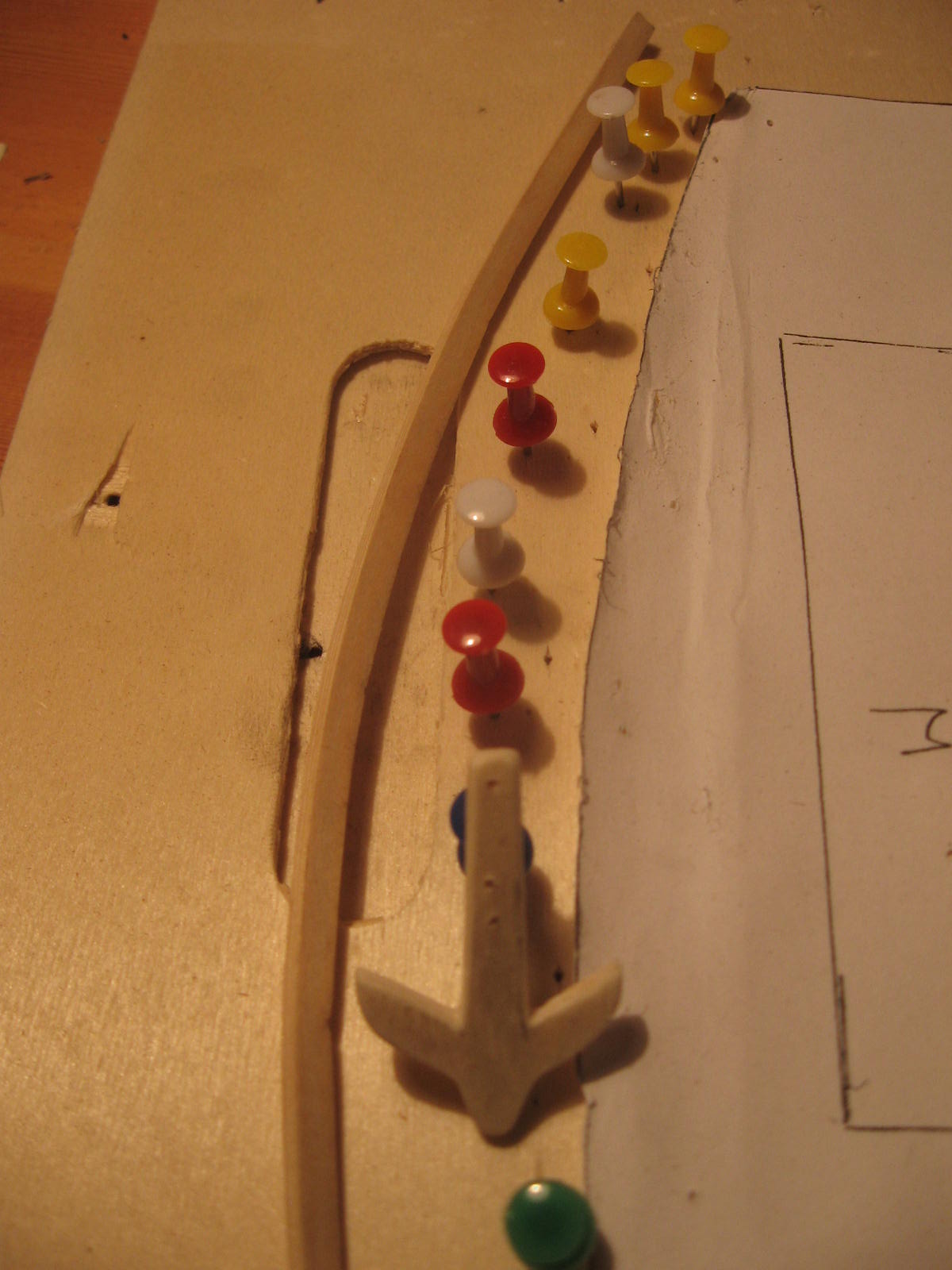 Poniżej przeszlifowany kadłub, efekty gięcia listewki i kotwica (jeszcze to lekkiego dopieszczenia)