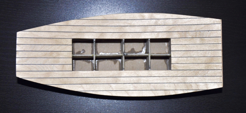 Ładownia została wzmocniona tekturą 2 mm rozpierającą ściany w celu dociśnięcia do pokładu.