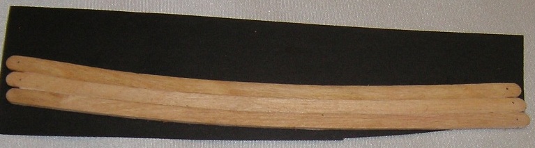 Witam. Dziękuję Kazimierzu . Bardzo ważna informacja praktyczna- nie wycierać kleju vikolopodobnego na mokro bo wsiąka w drewno i jest potem problem z bejcowaniem!!!Ja ten błąd popełniłem przy budowie grodzi i potem nie wiedziałem dlaczego jest różnica w odcieniu po polakierowaniu. Dzięki Jeskom, poćwiczę i ten sposób. Na razie wróciłem do deseczek. Starając się utrzymać klimat łodzi rybackiej , poszycie staram się wykonać z lekko podstarzałych desek. Forniru nie posiadam, desek tej szerokości też nie, w związku z tym produkcja desek jak na poniższej fotce. Patyczki do mieszania herbaty, naklejone po 3 szt na czarny karton, przycięcie ,wycyklinowanie nożykiem, wyrównanie desek na szerokość papierem ( pakiety po 8 szt). Prototyp (tu szpatułka) przetarty popiołem z kominka, szmatką nałożona lakierobejca, jeszcze raz wszystko posypane popiołem i przetarte szmatką bawełnianą na sucho. Tak to wygląda na rufie. Resztę planuję wykonać z „surowych desek”, poćwiczyć kołkowanie wykałaczkami , a retusz po zakończeniu całego poszycia.