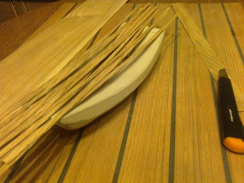 Wiem że zacząłem od "tyłka" strony. Tak samo źle powycinałem paski, miały być tej samej szerokości na całym kadłubie.