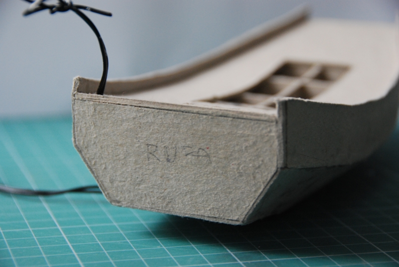 I mała "doklejka" na rufie. ("Walczyłem" z poprawnym doklejeniem boków kadłuba do dziobu, jak widać różnica "wyszła" na drugim końcu kadłuba...