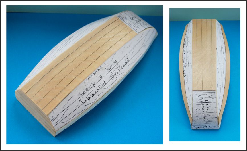 Kogowa Dżonka, to poligon doświadczalny. Idea ta sama, a mimo to każda jest inna. I Twoja będzie inna. To, że nadburcie się wyłamało nie jest tragedią. Fornir jest cienki i o to nietrudno. Proponuję więc wyciąć dwa paski forniru szersze i nakleić jeden na drugi. Tak z preparowaną listwę od dołu i od góry wyprofilować zgodnie linią ugięcia pokładu. Zaznaczyć połowę szerokości listwy. Połową szerokości przykleić do burty. Druga będzie wystawać nad pokład jako nadburcie. Dół listwy przy burcie z fazować [ściąć pod kątem lub wyokrąglić]. Dwukrotna grubość się nie wyłamie. Listwa będzie spełniała rolę nadburcia i jednocześnie odbojnicy. Duma więc będzie uratowana. Jeśli się nie mylę w ten sposób nikt jeszcze nie robił. W ten sposób Twój model już będzie inny od pozostałych.