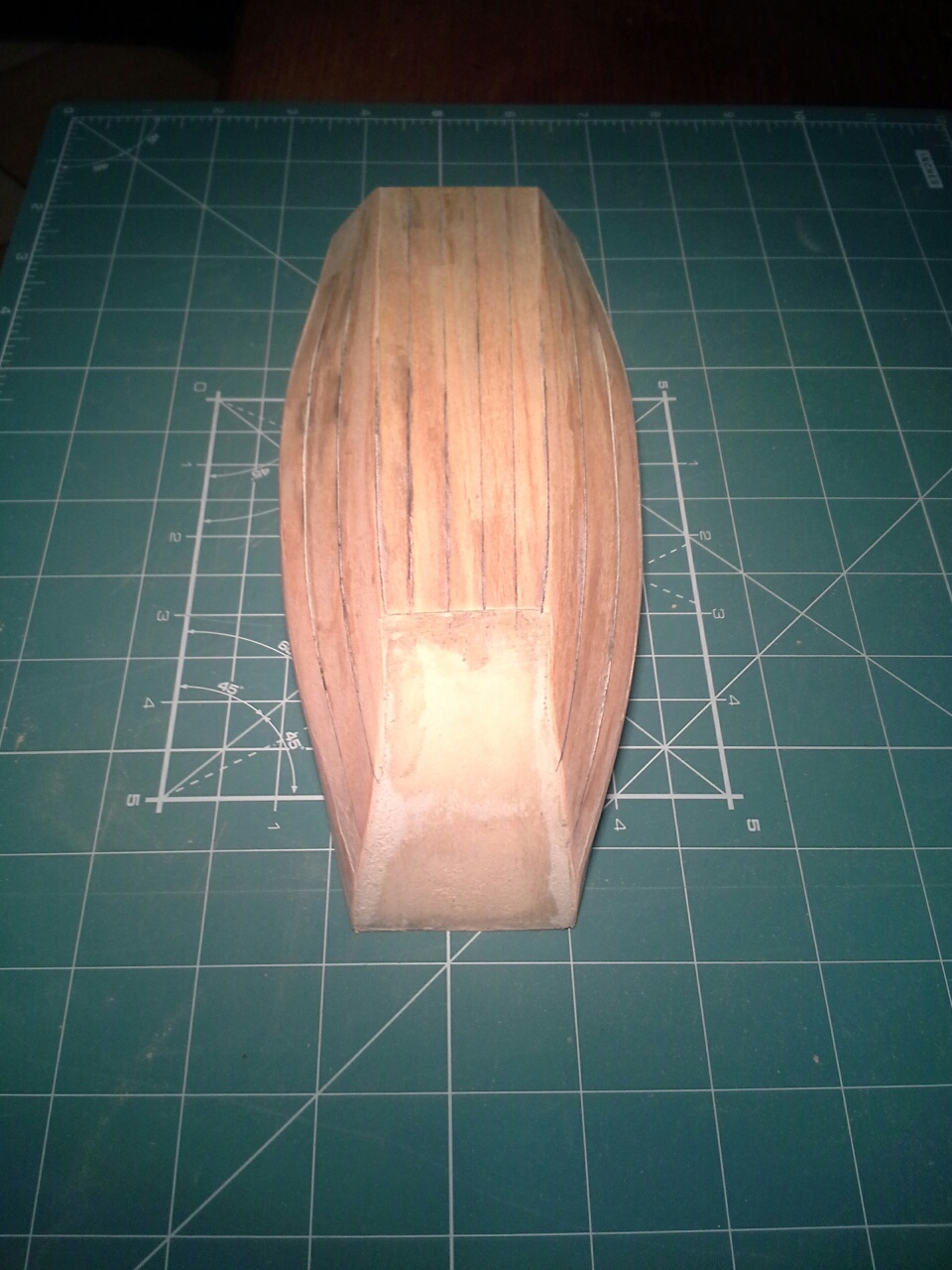 Kończąc model Endeavour II, posłuchałem Waszych rad i rozpocząłem "prawdziwą naukę" od dżonki. Nie zamieszczam, zdjęć szkieletu, bo były robione na szybko i z lampą błyskową. Relację zaczynam od etapu sklejonego kadłuba. Kolejny etap to szpachlowanie wymuszone nierównościami przy dziobie, a potem fornirowanie.