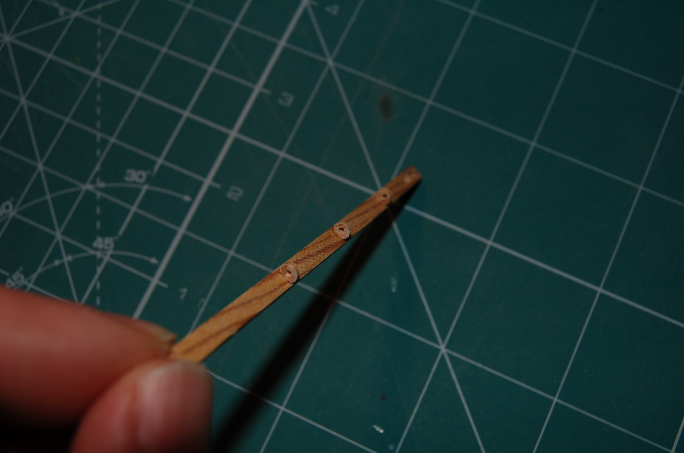 Powstały pierwsze bloczki i trzy "przelotki" mające na belce prowadzić linę kotwicy. Na zdjęciu wygląda to tak:)