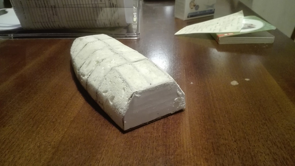 Drukujesz sobie ją z Kogi, naklejasz na tekturę 1-3 mm (proponuję 1,5mm, będzie wystarczająco sztywna a będzie się ją stosunkowo łatwo wycinać nożykiem), wycinasz to wszystko jak jest w szablonie i sklejasz ze sobą wszystkie elementy i masz gotową bryłę kadłuba- bez pianki, wypełnień i innych niepotrzebnych cudowań.