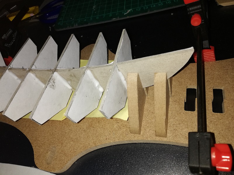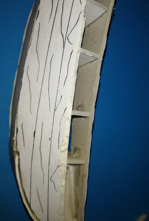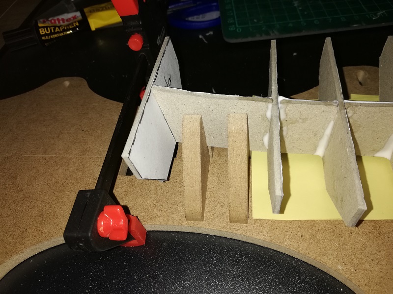 Jak wszyscy najpierw szkielecik z tektury 2 mm, nie jest idealnie, ale lepiej niż w poprzedniej, wycinane nożykiem Ak-4 z ostrzem KB. (OLfa)