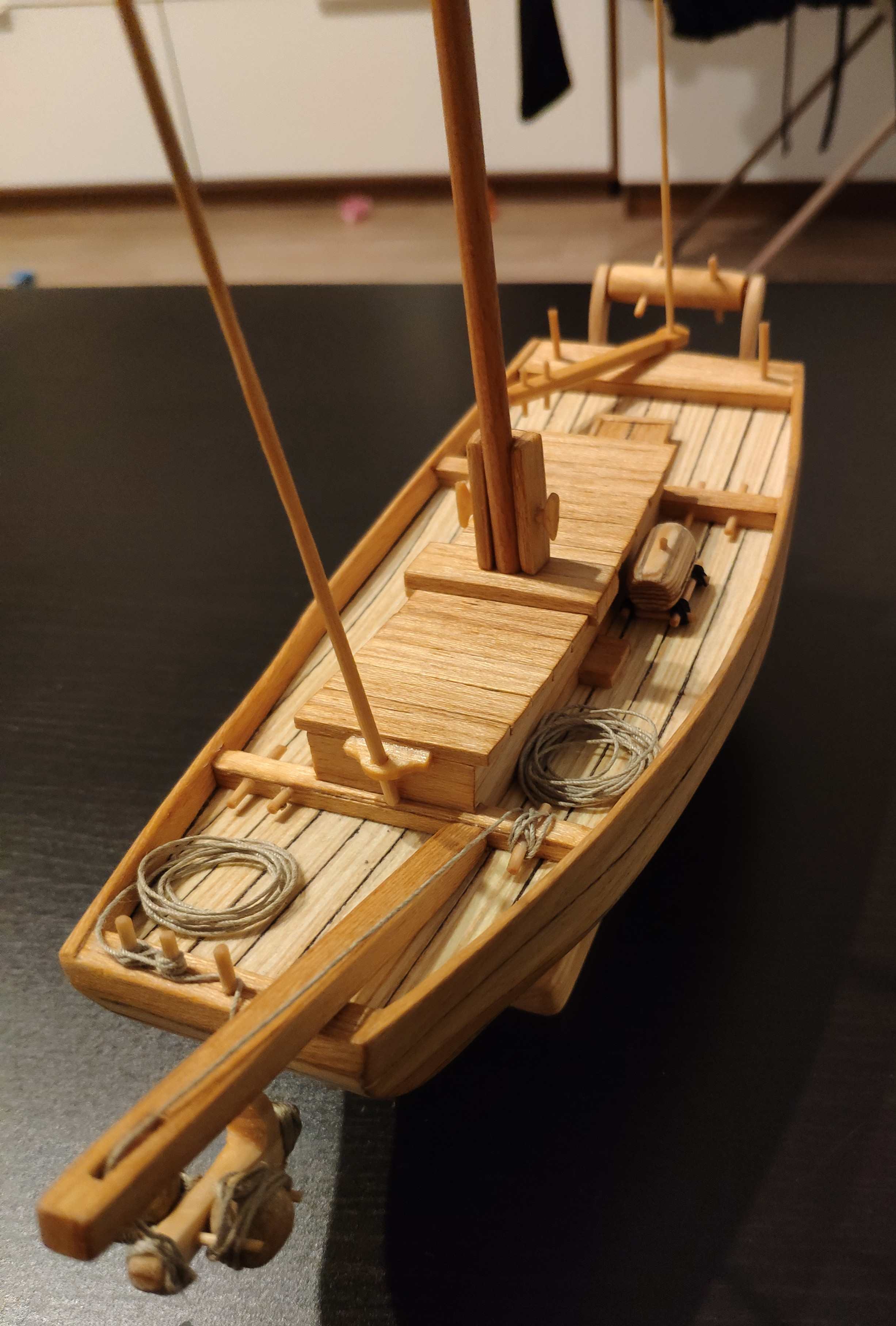 Dzisiaj kotwica i pierwsze liny na pokładzie plus próba z beczką która mi nie wyszła za bardzo będę ją chyba robił od nowa.