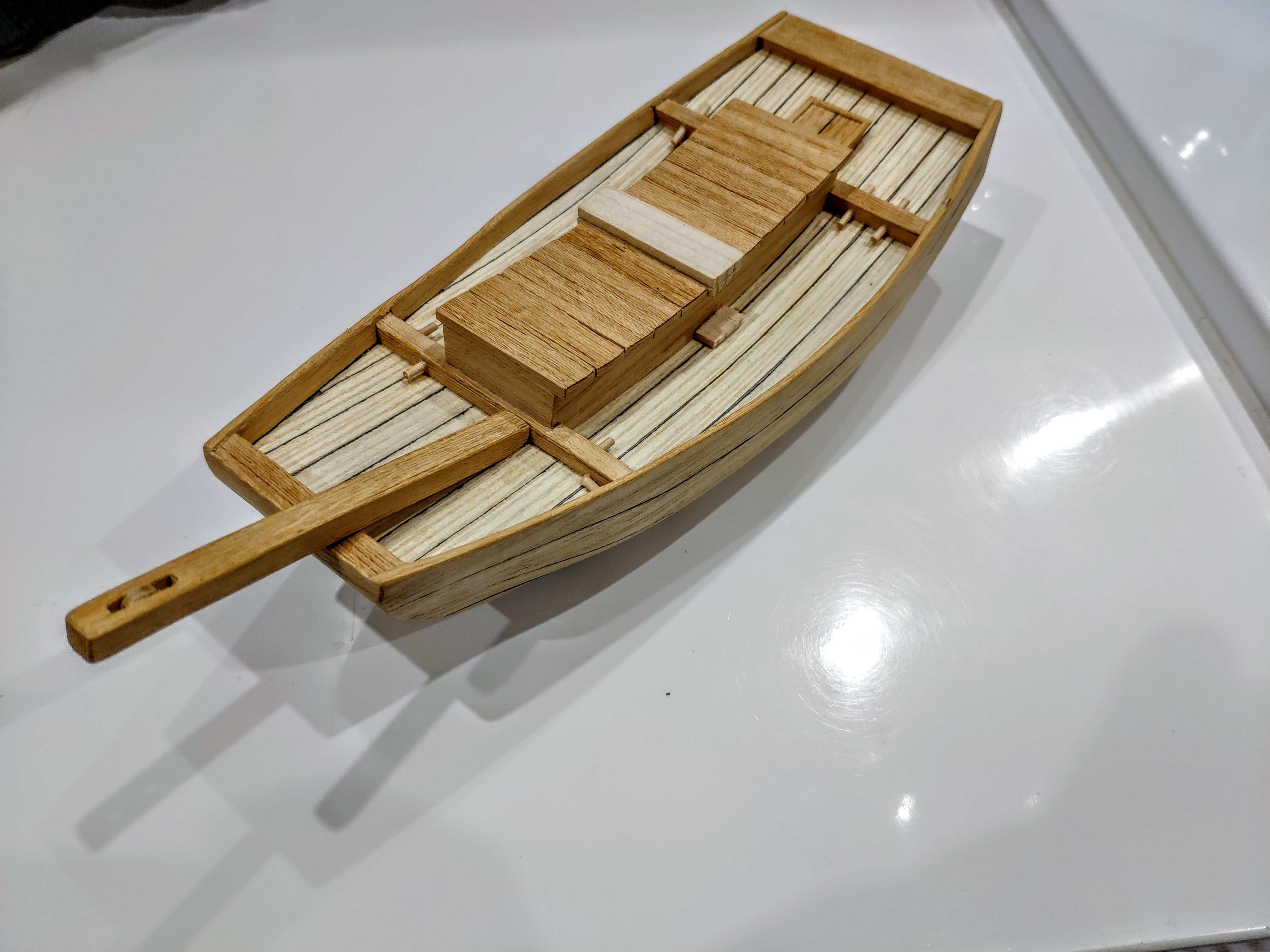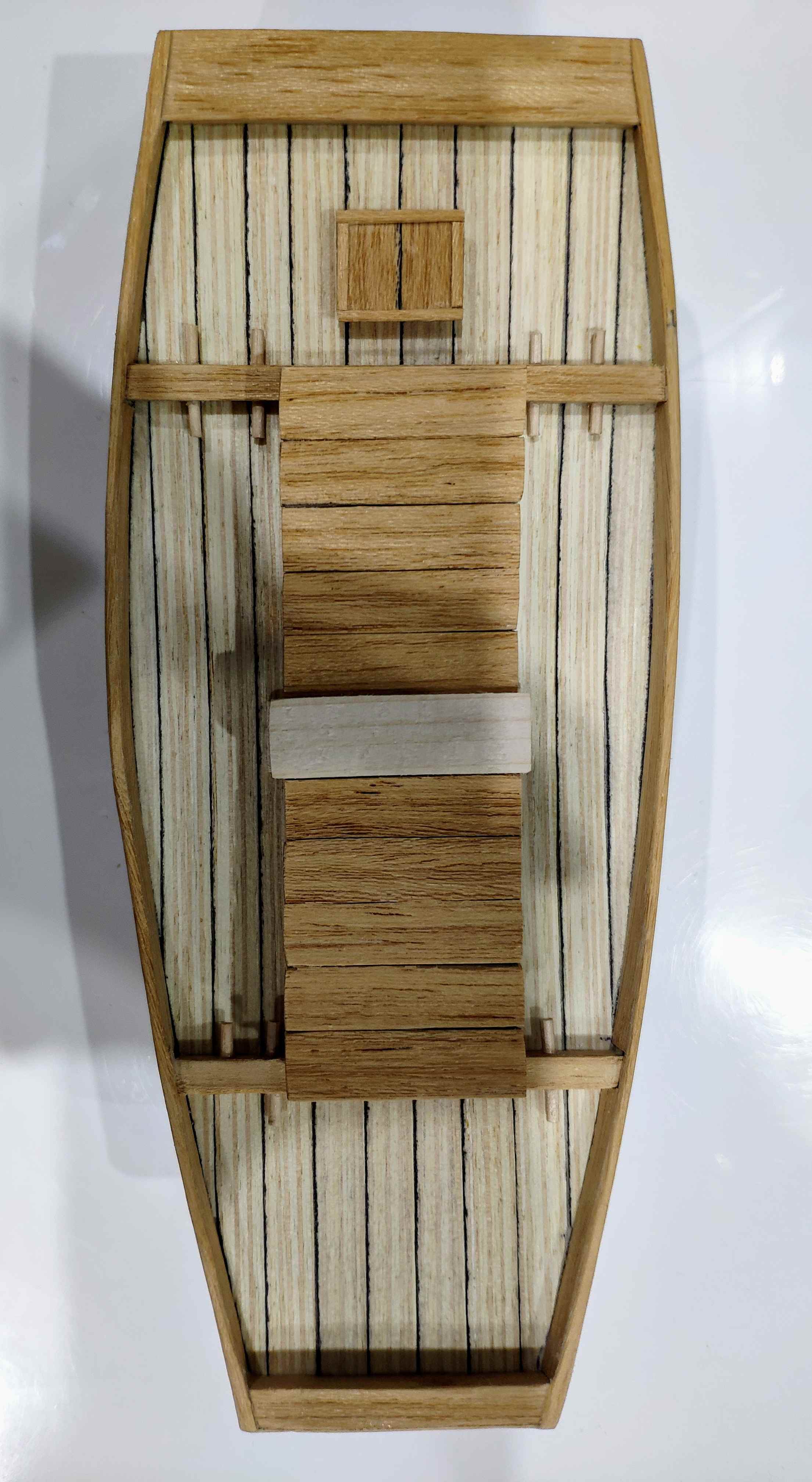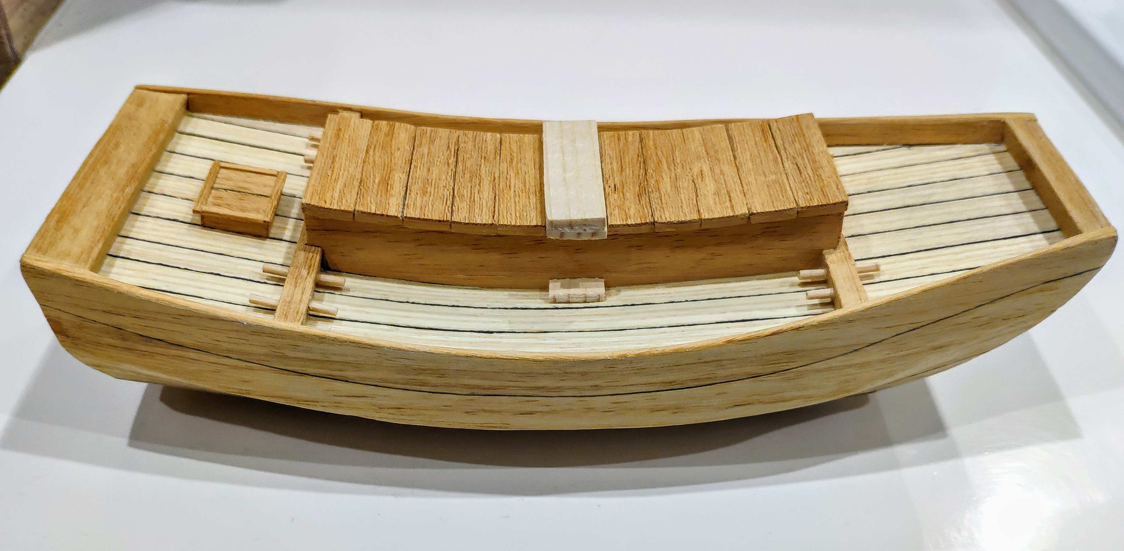 Poszycie gotowe zaczynam pokład i tutaj sobie wymyśliłem podwójne burty co jest bardzo precyzyjną robotą i czasochłonną a najtrudniej będzie z 3 mm paskiem forniru dookoła pokładu na płasko by połączyć boki burt. Zobaczymy jak to wyjdzie :-)