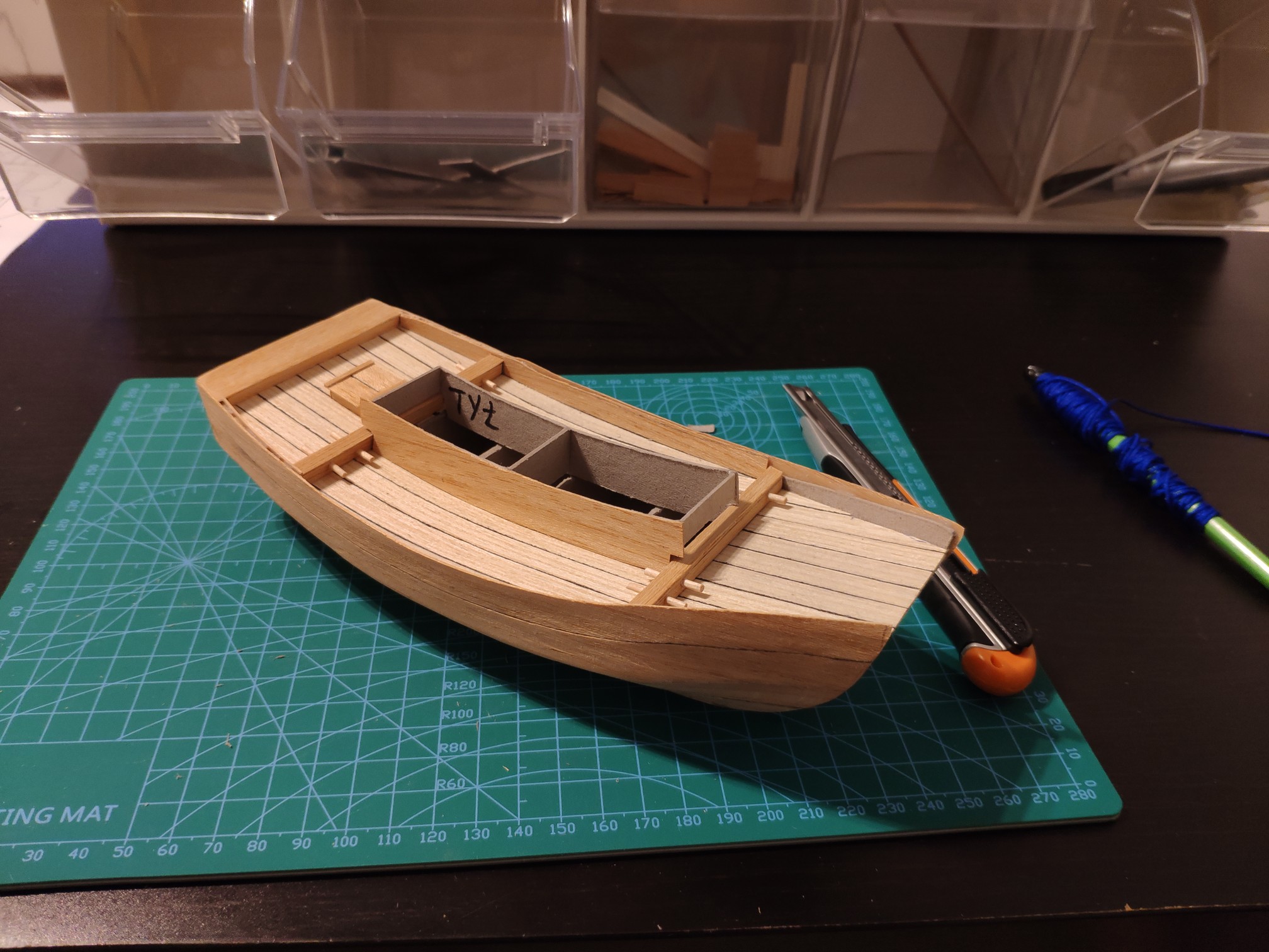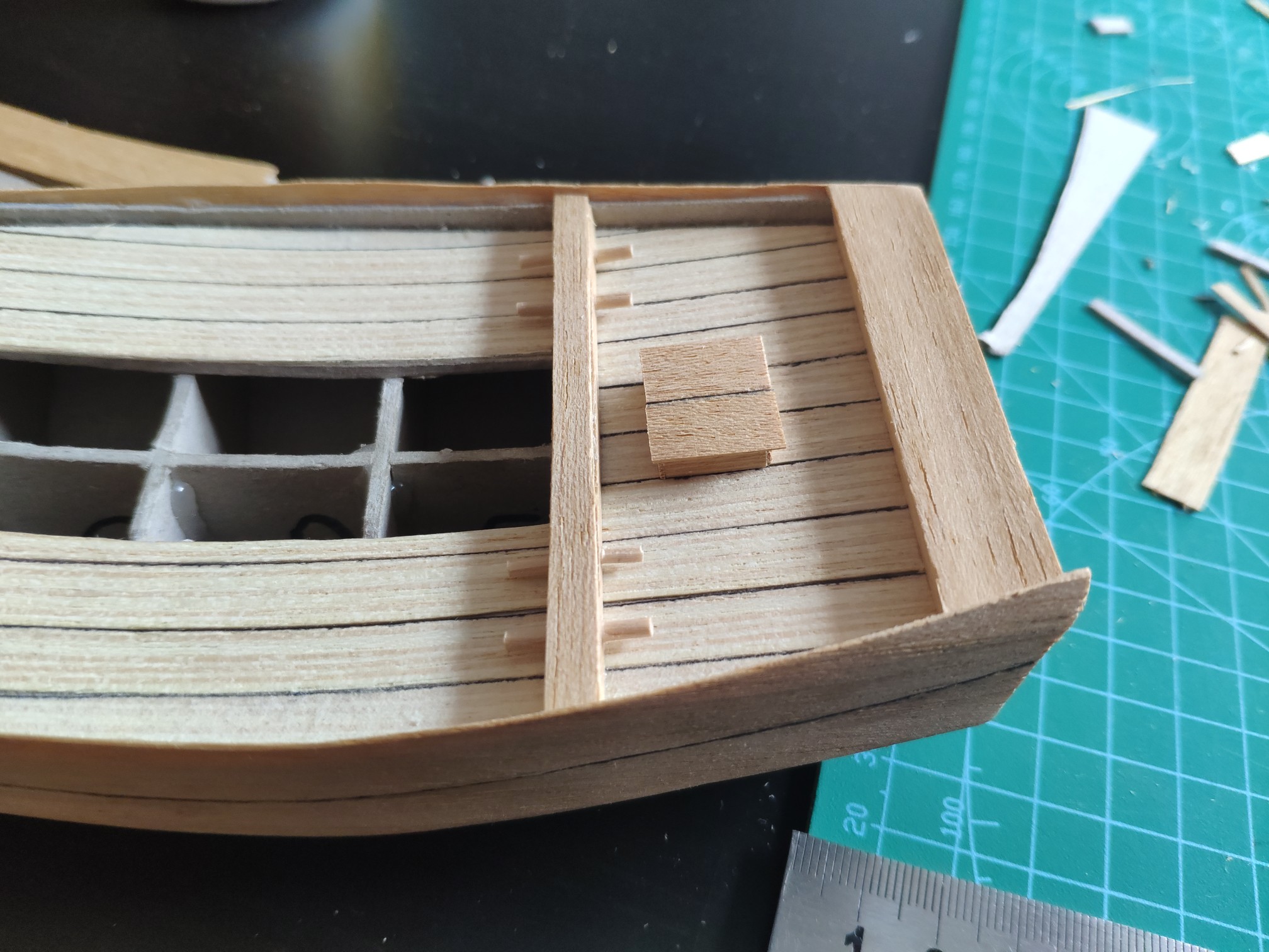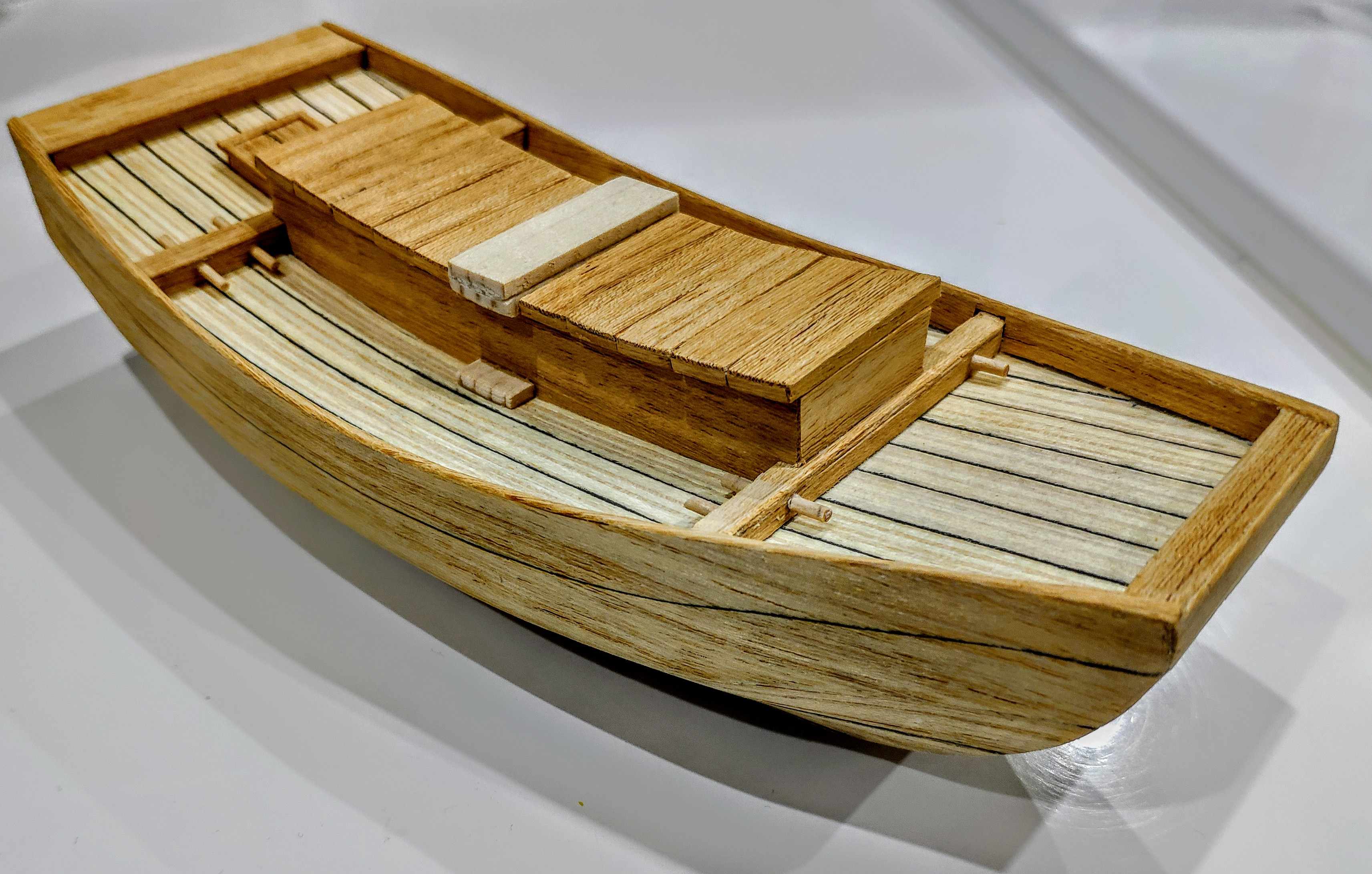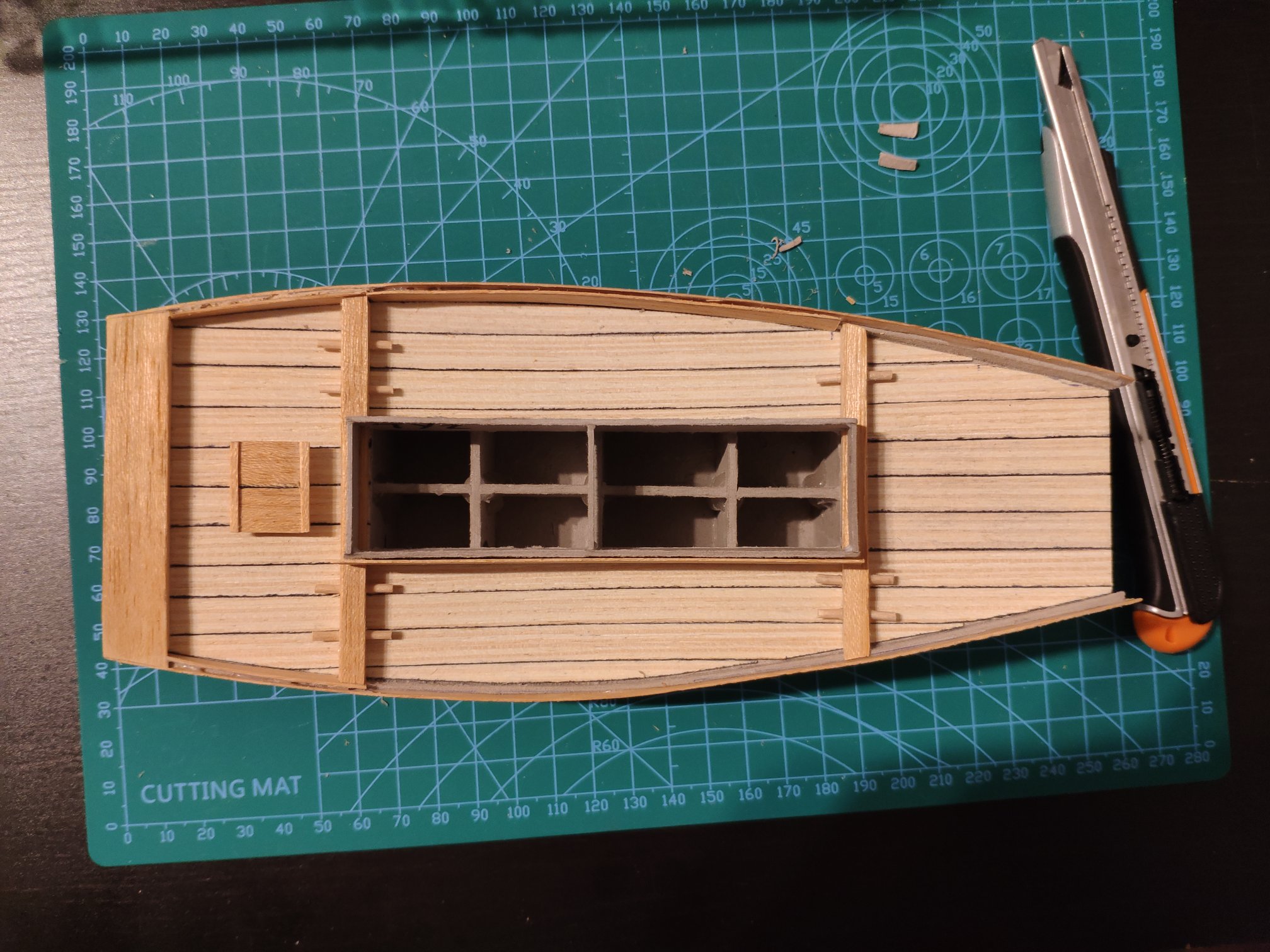 Poszycie gotowe zaczynam pokład i tutaj sobie wymyśliłem podwójne burty co jest bardzo precyzyjną robotą i czasochłonną a najtrudniej będzie z 3 mm paskiem forniru dookoła pokładu na płasko by połączyć boki burt. Zobaczymy jak to wyjdzie :-)