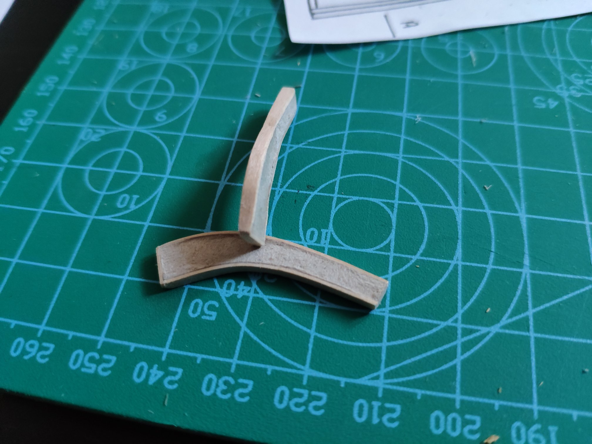 Prace stoją w miejscu praktycznie ... Natrafiłem na mały problem nie znając się na fornirze wybrałem na kadłub Koto a na pokład Sosnę i było wszystko oki chociaż już po drodze zobaczyłem, że Koto lubi się łamać wzdłuż słoja gdy tnę go w poprzek przy elementach poniżej 1 cm ale myślałem, że taka specyfika forniru aż nie spróbowałem Brzozy Fińskiej ... bajka można ciąć nawet po łuku i nie ściąga w słoje :-)