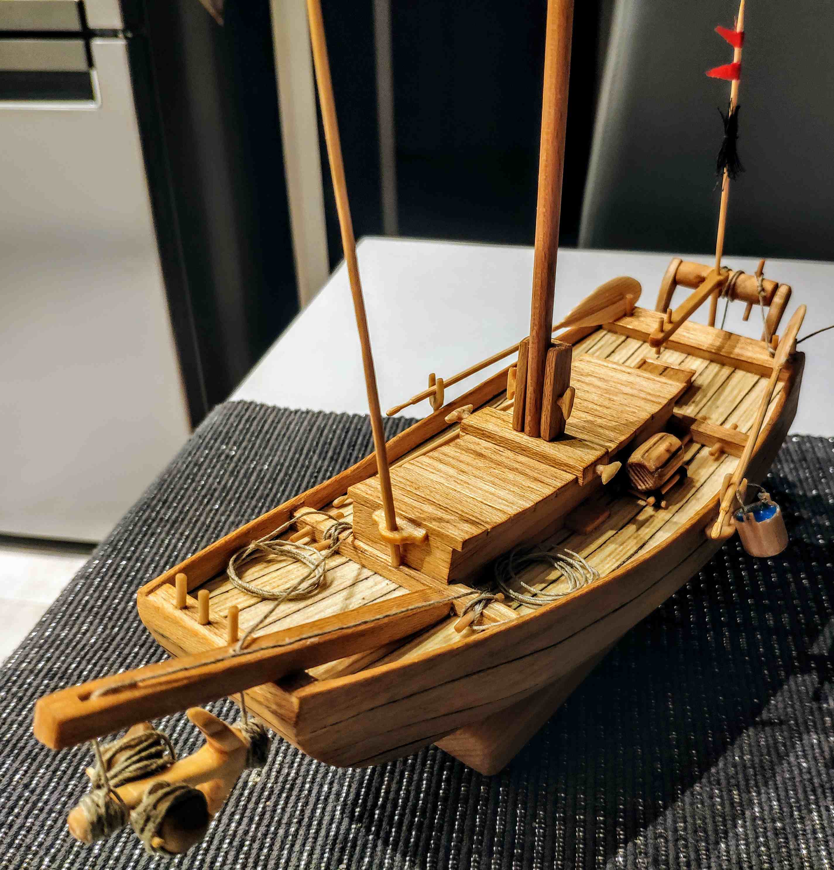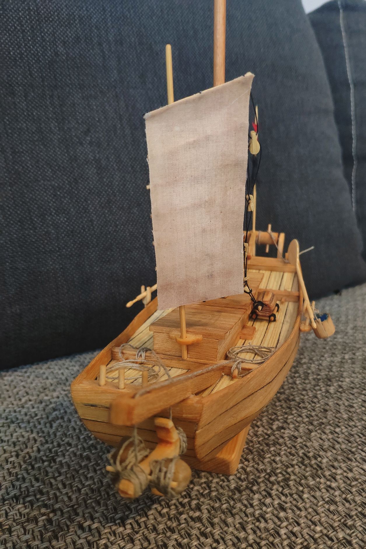 Dzięki Panowie. Niestety mam tylko sosnę spróbuję tą beczkę zrobić z wykałaczek albo z forniru w kolorze burt bo mi trochę zostało (mam też wenge ale to chyba będzie za ciemne w stosunku do reszty modelu).