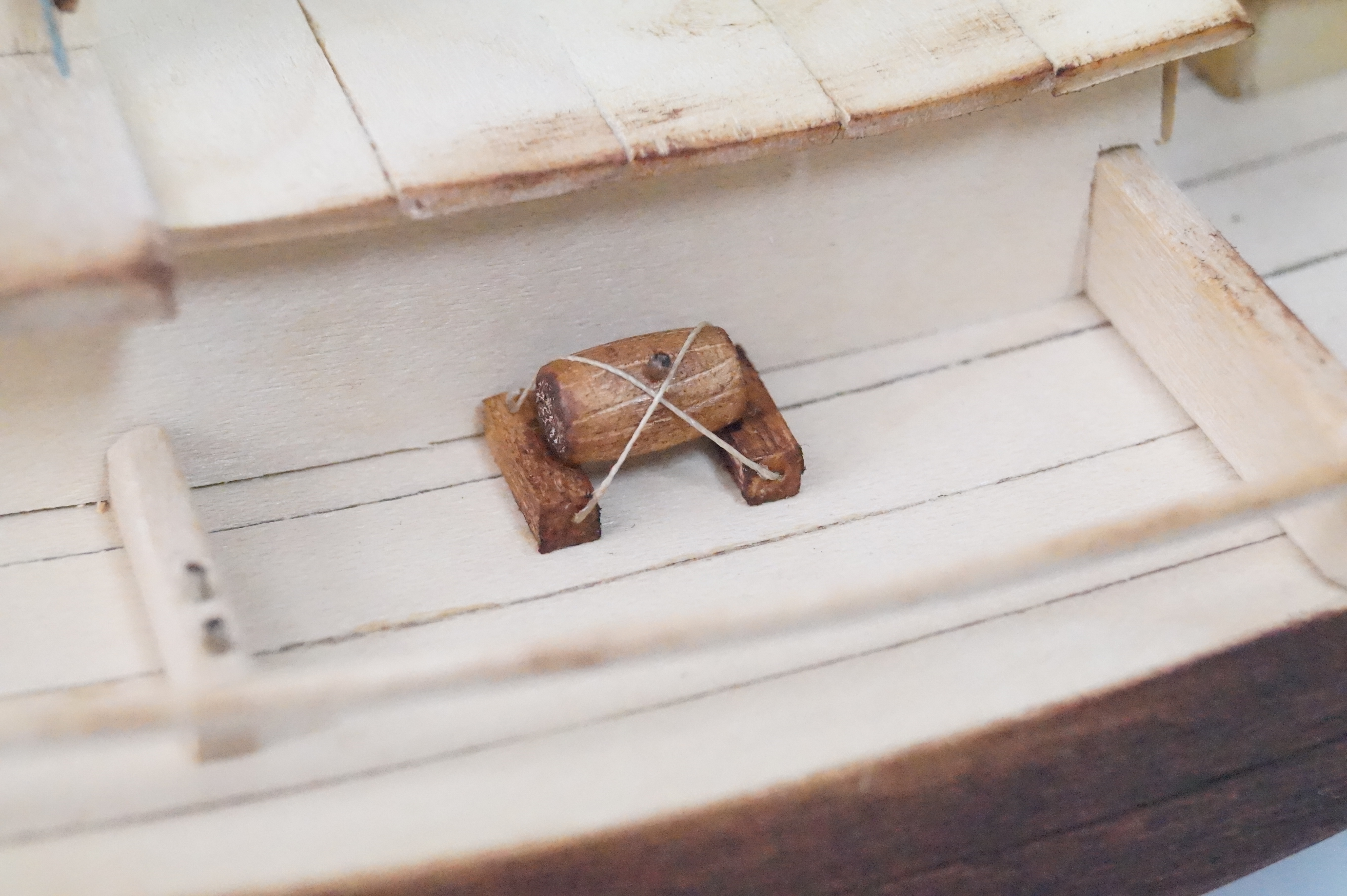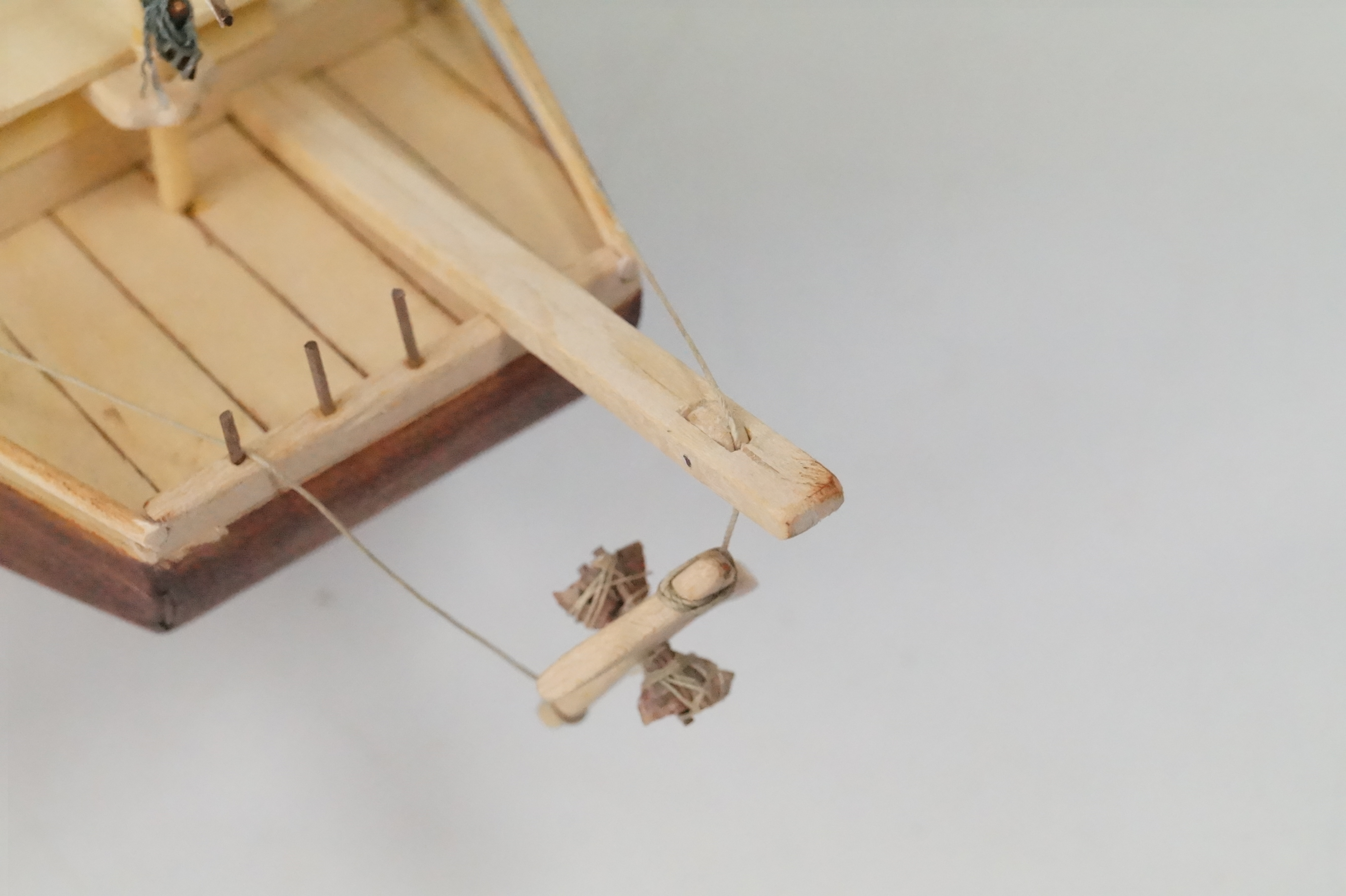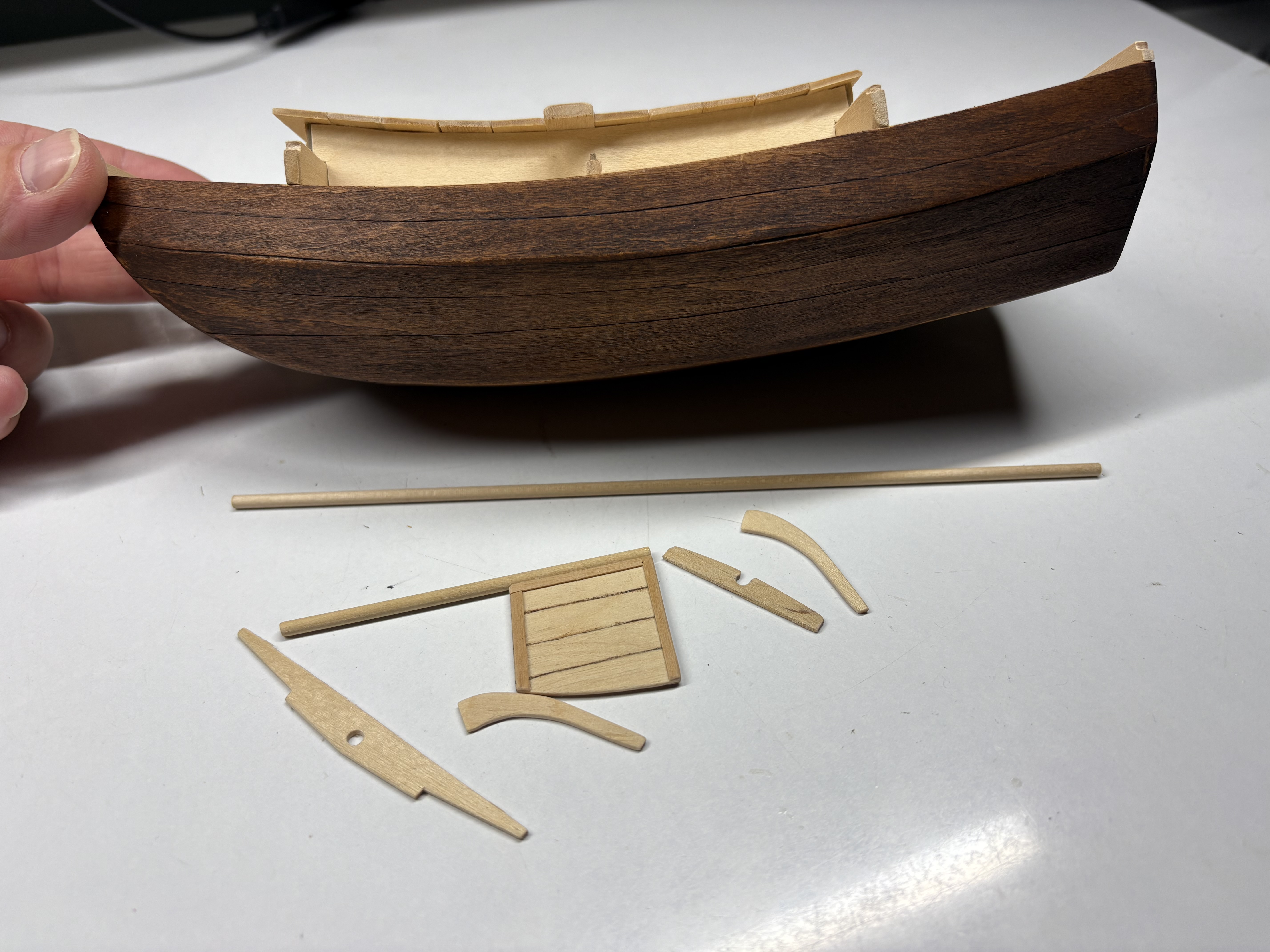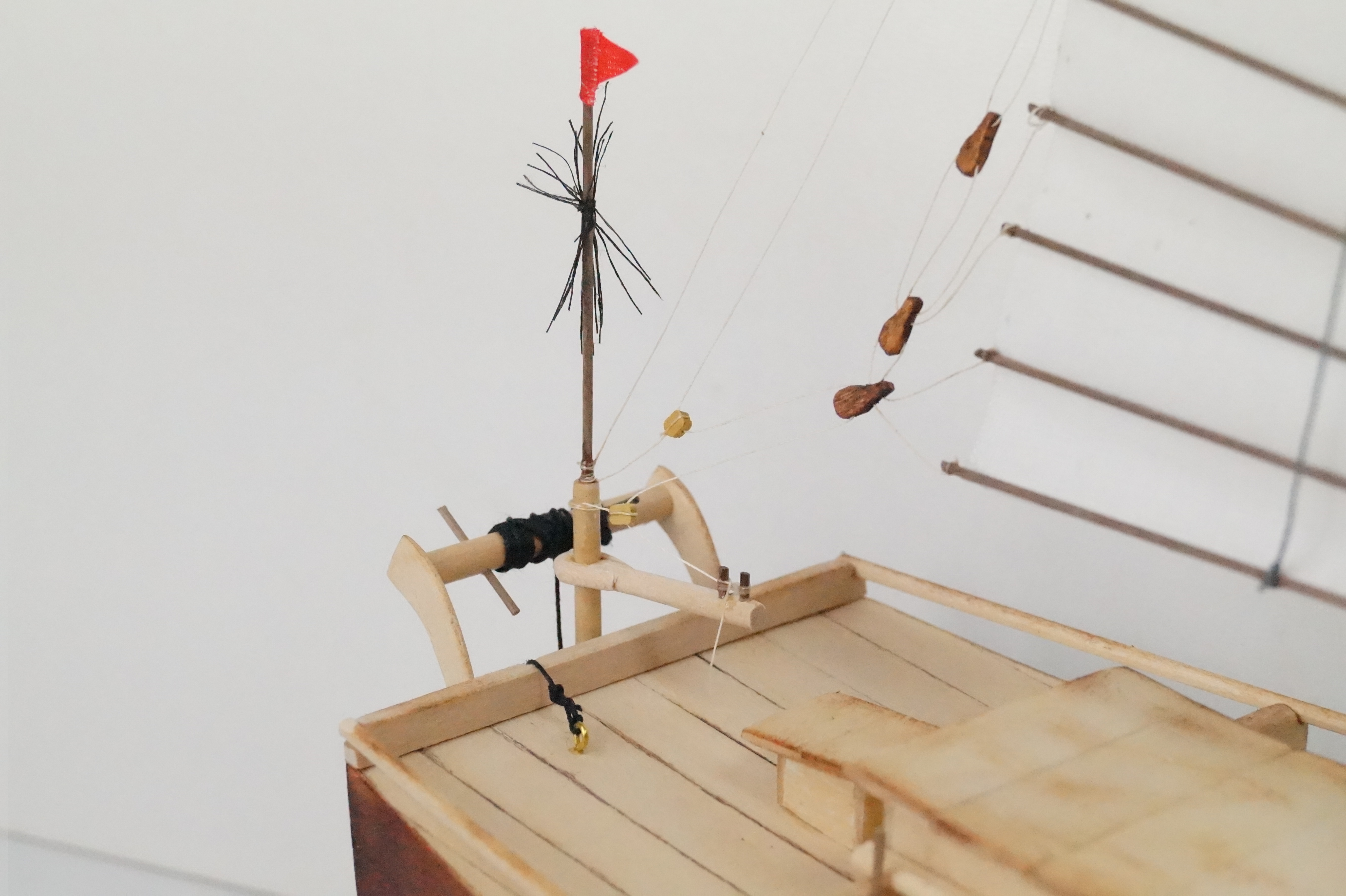 Dżonka nabiera kształtu, w końcu trzeba było zawiesić pierwszy żagiel. Knagi zrobione własnoręcznie, kilka prób, ale w końcu się udało. Nie są doskonałe, wiem, ale są