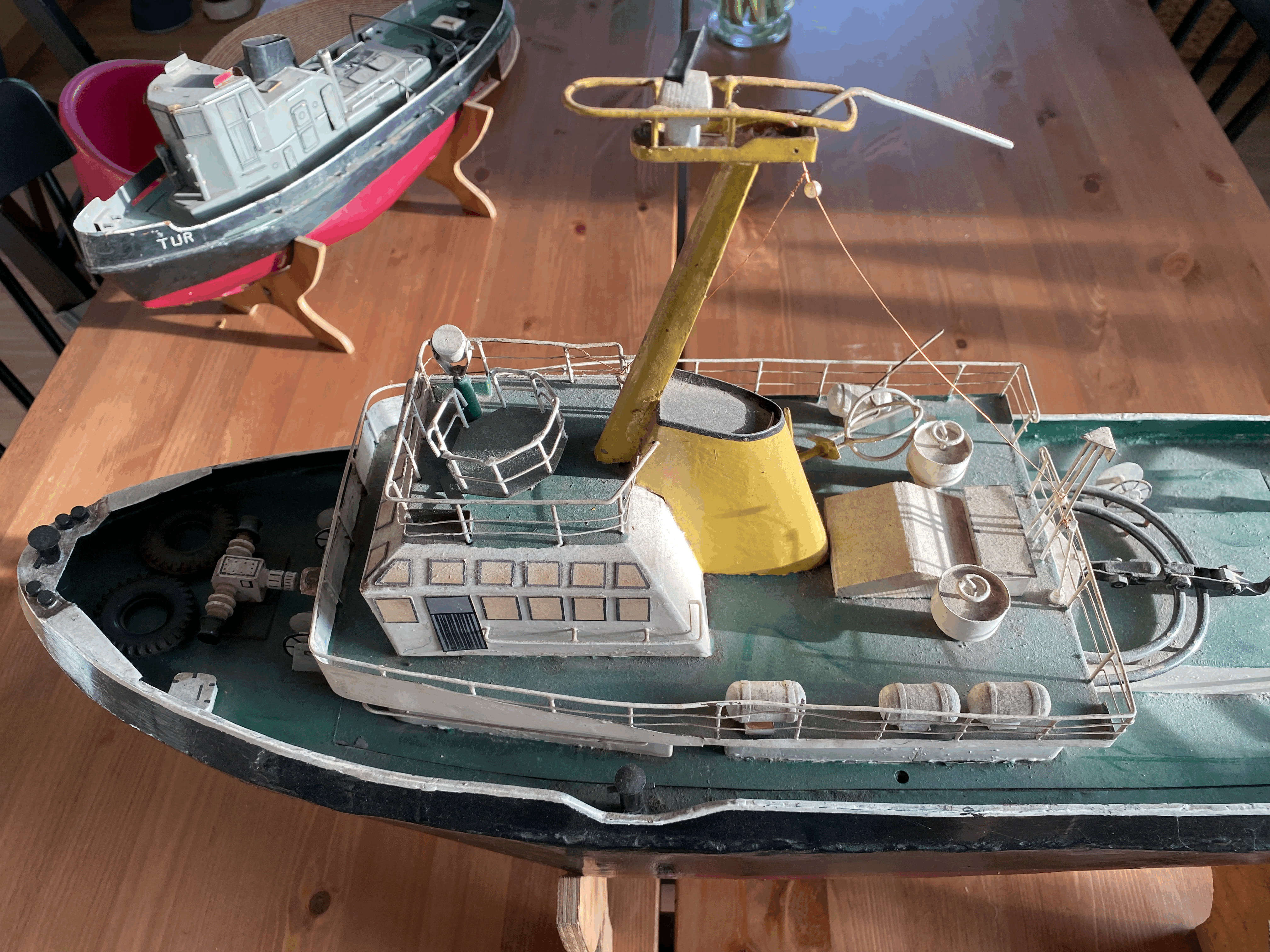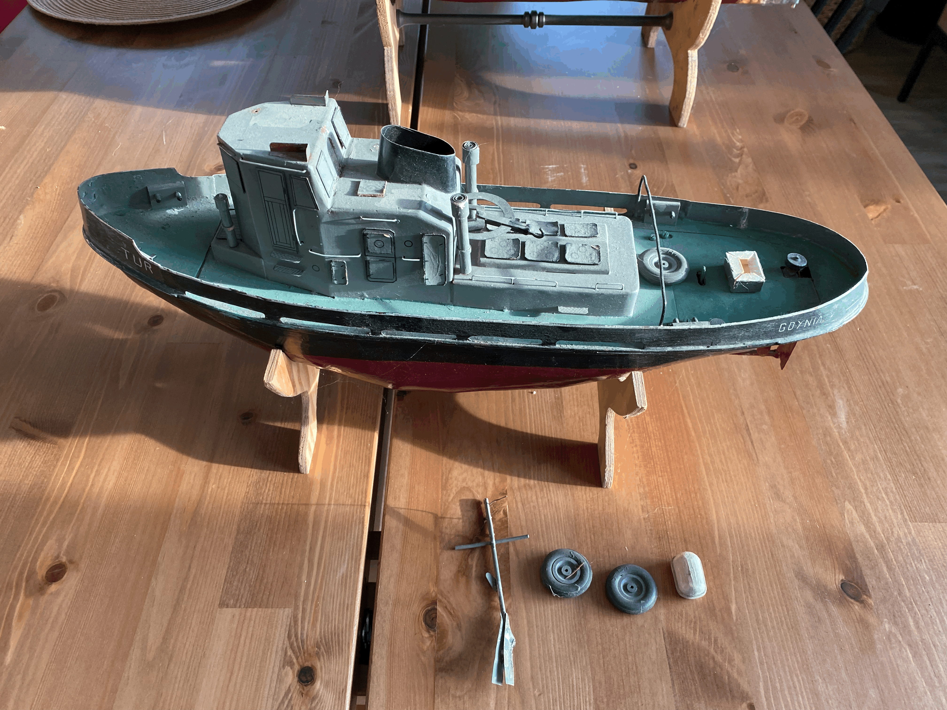 Kolego trafiłeś tutaj na forum modelarzy, którzy budują modele żaglowców, okrętów i statków. Na zdjęciach przedstawiasz dwa modele holowników. Jeden z nich, ten mniejszy na burcie ma nazwę TUR. Był taki holownik, czy rzeczywiście ten model go przedstawia to trudno stwierdzić. Ja ich nie zidentyfikuję. Może któryś z kolegów, który lubuje się w budowie holowników powie coś więcej na ich temat. Oba modele zapewne nie są kompletne. Są to jak twierdzisz „blaszanki”, czyli z dosyć dawnych czasów. A jaka jest ich wartość? Według mnie znikoma. Ale jak to się mówi – towar jest tyle wart ile nabywca zechce za niego zapłacić. Więc tutaj nikt Ci modeli nie wyceni, nawet w przybliżeniu. Nic innego Ci nie pozostaje tylko wystawić je na „Aledrogo”, na licytację i cierpliwie czekać na nabywcę. Pierwsza cena wywoławcza będzie sondażem. Jeżeli będzie za wysoka nikt się nie zainteresuje. Wówczas cenę trzeba będzie obniżać do momentu, aż się ktoś zainteresuje. Życzę, więc powodzenia.