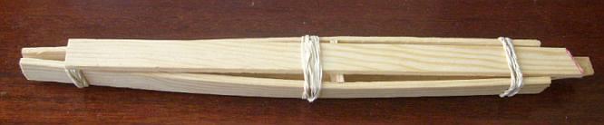 Taki rodzaj łodzi to pychówka. Niestety co do gięcia, to różne sposoby są tu prezentowane, a ten z namaczaniem i suszeniem też pochodzi z Kogi - może ktoś mi podpowie jaki w tym przypadku jest najlepszy? Model jest malutki (216 mm), a listewki chyba zbyt grube: 4x15 mm, więc gięcie ich na takiej długości sprawia mi trochę problemów. Po wyprofilowaniu dna (w tym krawędzi) łatwiej dopasować listwy, ale wciąż stoję przed dylematem: kąpiel we wrzątku (ok 15 min), trzymanie nad parą (ok 5 min), czy po prostu trzymanie w "ściągach"? Na razie nie stosuję jeszcze kleju, ale nie wiem czy czasem już nie powinienem...