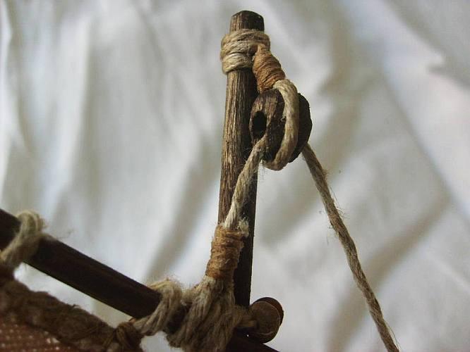 Liny usztywniam wikolem, nie wiem czy to dobry pomysł, ale chyba się sprawdza. Może podpowie mi ktoś w jaki sposób powlekać olinowanie ruchome, aby zachowało elastyczność? Używam szpagatu i nici bawełnianej.