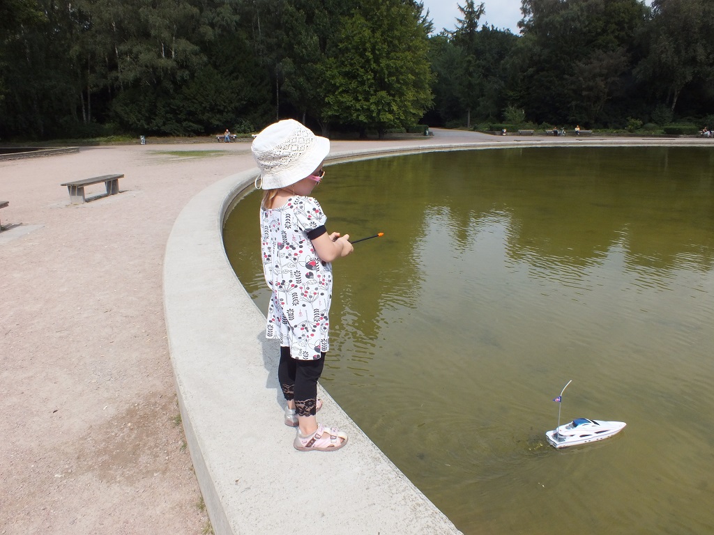 Ćwiczenia z robienia kołkownicy. Stwierdziłem, że jednak kołki z których byłem dumny, jakieś takie ogromne wyszły w porównaniu z nagelbankiem. Ponadto chyba przed malowaniem warto wcześniej lakierem nitrocelulozowym drewno pociągnać i delikatnie przeszlifować, żeby "włosy" z drewna nie wstawały. Załączam także parę fotek z wycieczki z dziećmi do Stadparku, gdzie musieliśmy zabrać model zdalnie sterowanej łodzi:-)
