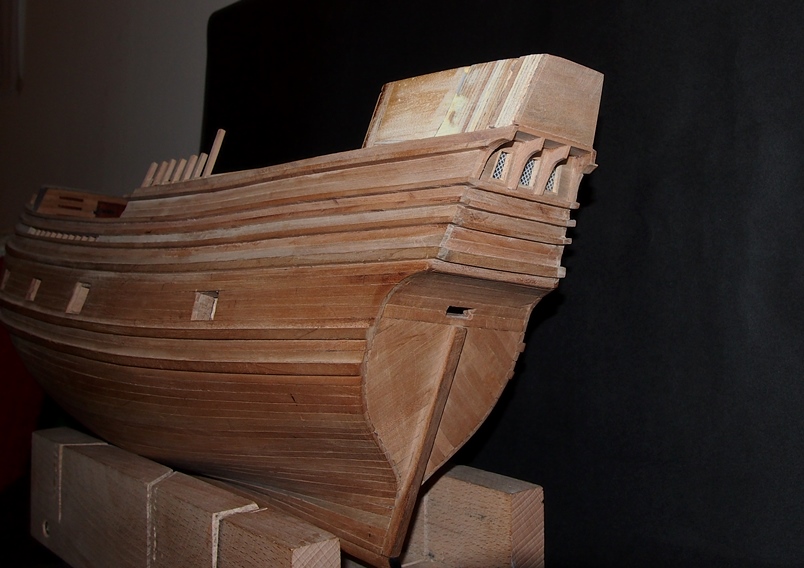 Dziób prawie skończony, jeszcze brakuje kompletu wsporników i w niektórych miejscach podszlifowania.