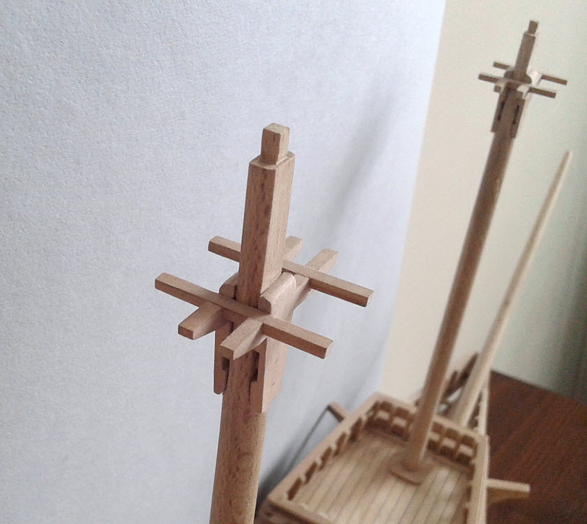 Po wszystkim pozostaje już tylko wygładzić ślady obróbki papierem ściernym i odpowiednio uformować stożkowy kształt i mamy główne maszty gotowe