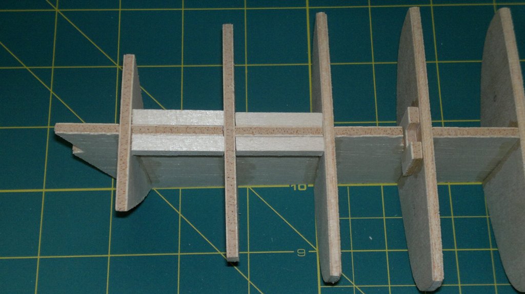 Szczerze mówiąc 2mm sklejka użyta przez producenta na szkielet i pokład to dość delikatny i elastyczny materiał. Usztywnienie szkieletu było więc dobrym pomysłem i usunęło problem zwichrowanego szkieletu, który występował w momencie gdy nie było dodanego przeze mnie usztywnienia.