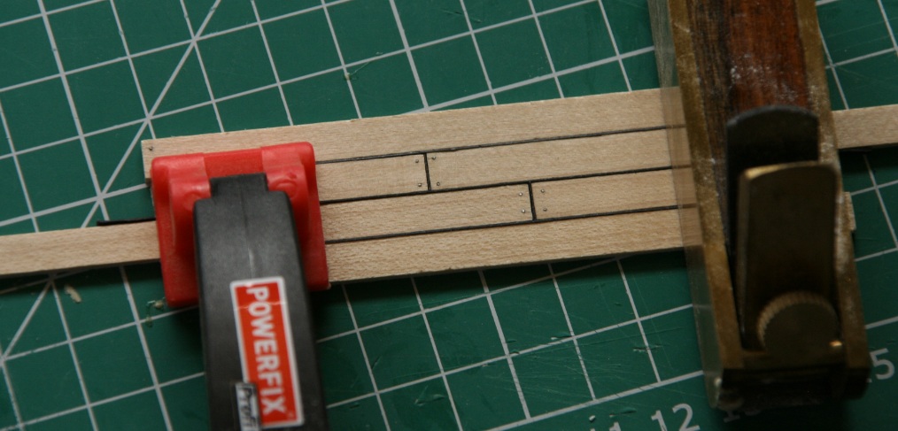 Następny krok to "kołkowanie" czy też imitacja gwoździ oraz nacięcia na deskach, aby osiągnąć efekt krótszych desek.