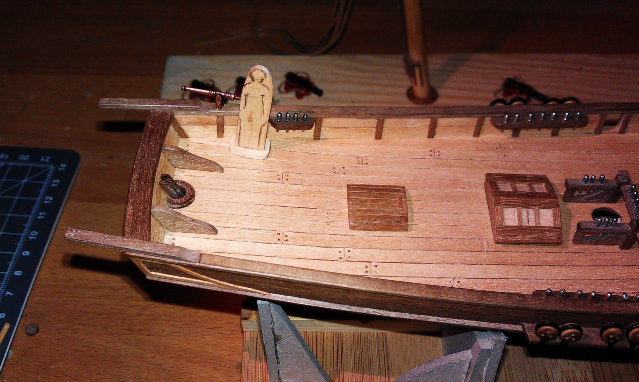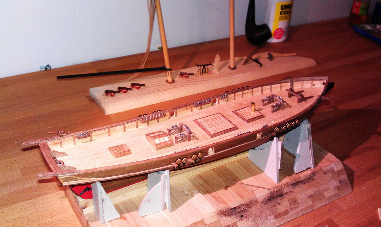 Aktualnie prace są na etapie wykonania detali wyposażenia pokładu. Dopóki nie będę miał wszystkich elementów gotowych nie będę niczego przyklejał chciałbym być pewien że wszystko będzie z sobą dobrze współpracować.