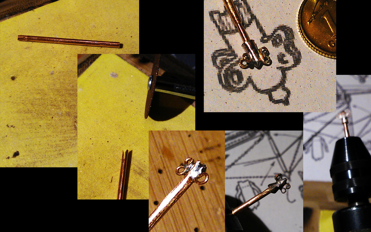 okucia powstały z miedzianego drutu 2 mm i 0,8 mm (druty pochodzą z kabli)