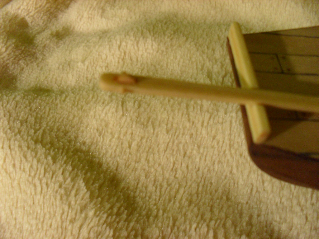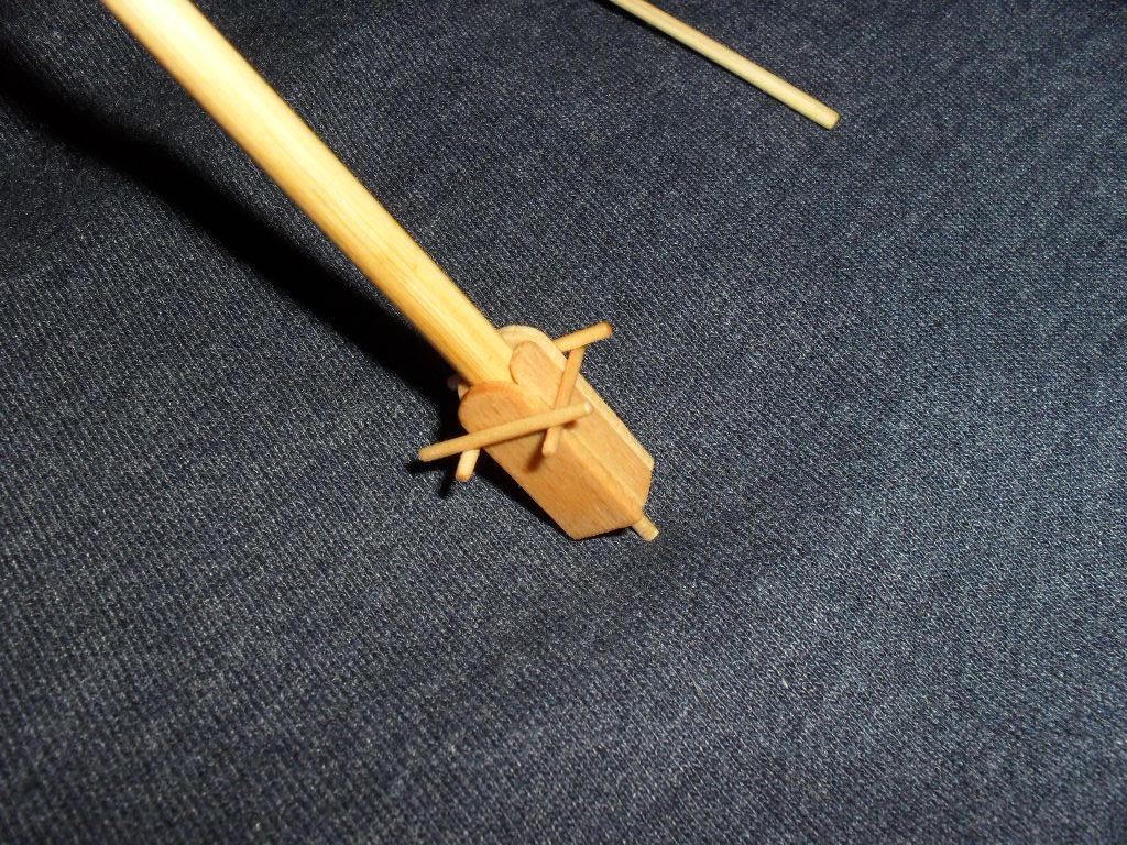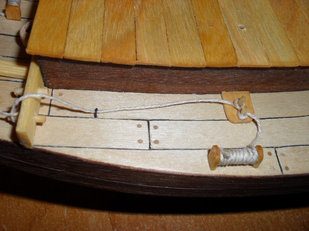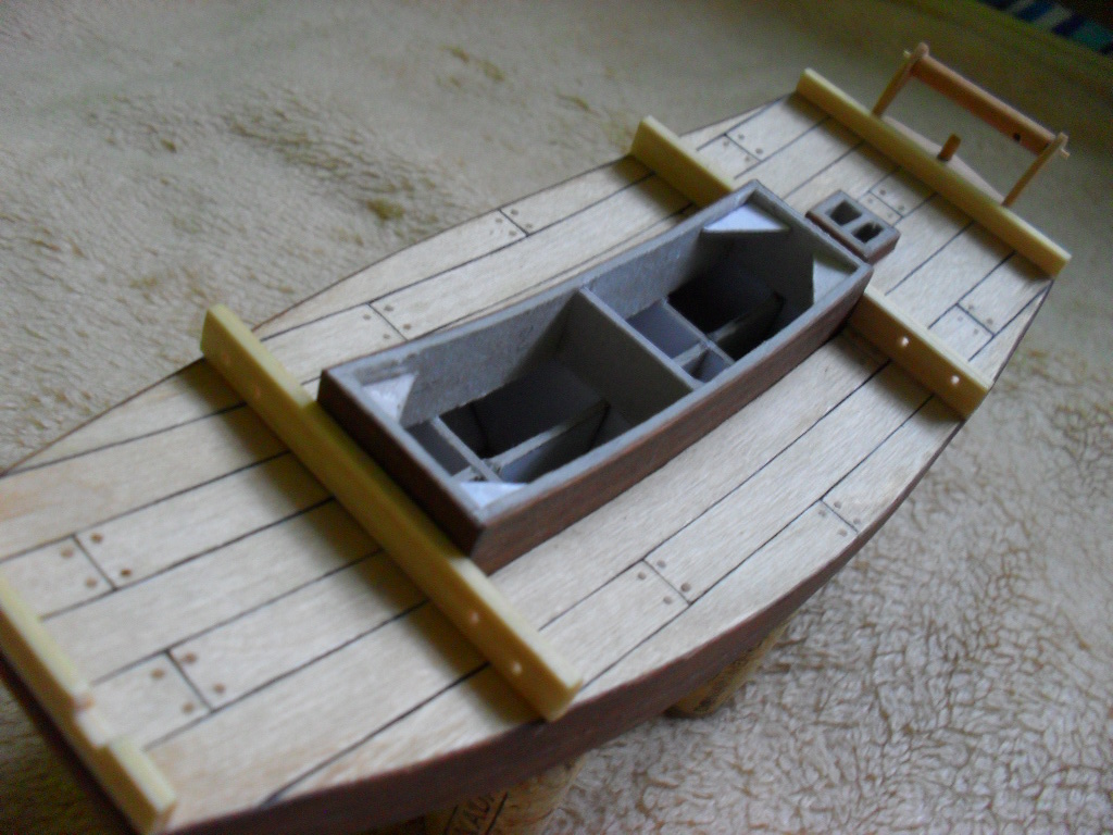 . Jak na razie kolejne elementy przybywają na model , pojawiło się mocowanie steru oraz 4 listewki przyklejone do pokładu. Ster jest włożony na sucho.