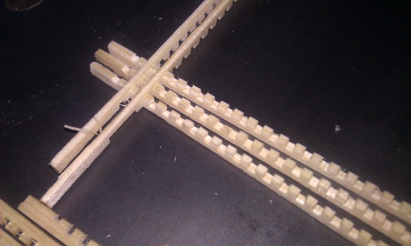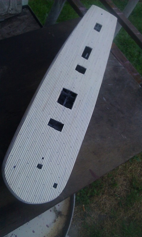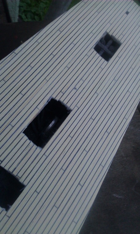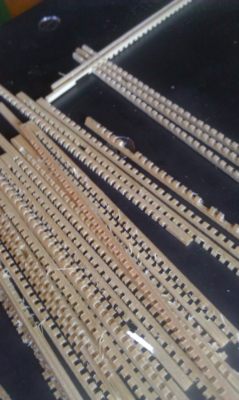 W kolejnych modelach będę zastanawiał się nad ewentualną zmianą materiału pokładu oraz na zastosowaniu cieńszego czarnego papieru do rozdzielania listewek. tu użyłem czarnego twardszego papieru gr 0,3 mm.