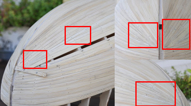 bambus jako materiał na poszycie ma wady i zalety: dobrze się obrabia wzdłuż włókien i jest bardzo elastyczny można go skręcić w śmigło (bez wcześniejszej obróbki termicznej czy kąpieli wodnej) bez obawy, że pęknie (ta cecha bardzo była pomocna przy poszywaniu dolnych partii kadłuba)