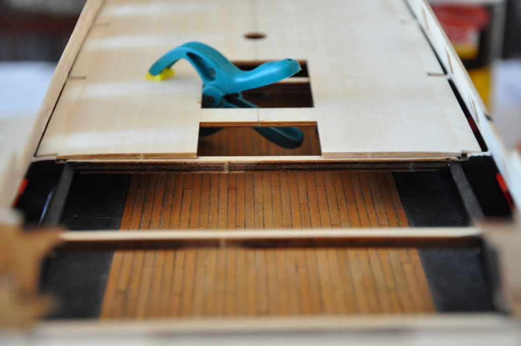 kołkowanie pokładu (planuję igłą lekarską) i pokost będzie dopiero po wybudowaniu ścianek dziobówki i rufówki