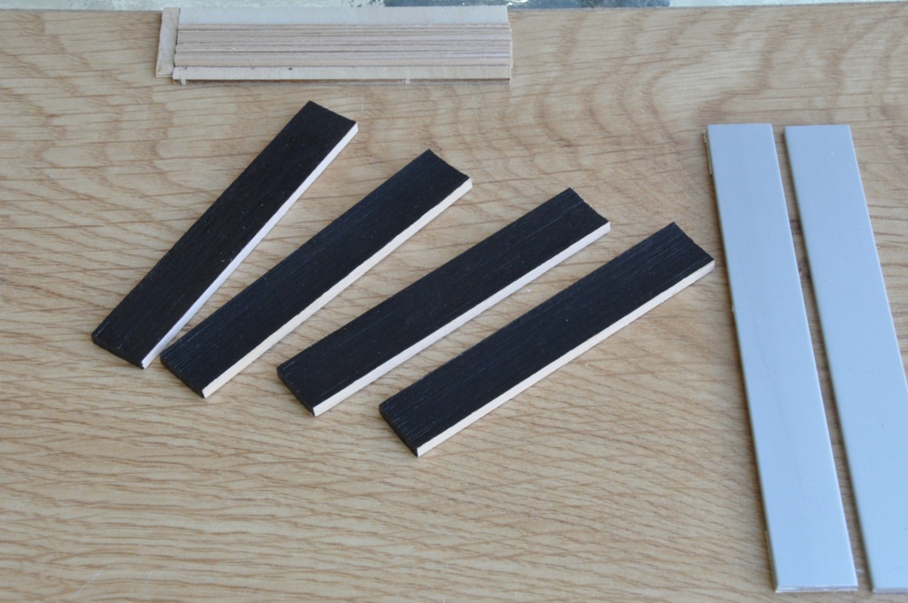 wg DeA listewki te powinny mieć 1mm grubości i 3mm szerokości, sprawdziłem wszystkie swoje listewki przeznaczone na te elementy i żadna nie ma grubości 1mm, moje mają wymiary 1,17-1,28mm grubości oraz 3,20-3,52 szerokości, po prostu wkleiłem je wcześniej nie mierząc