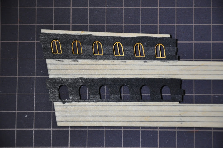 zakończyłem prace wewnątrz przy ambrazurach lewej burty