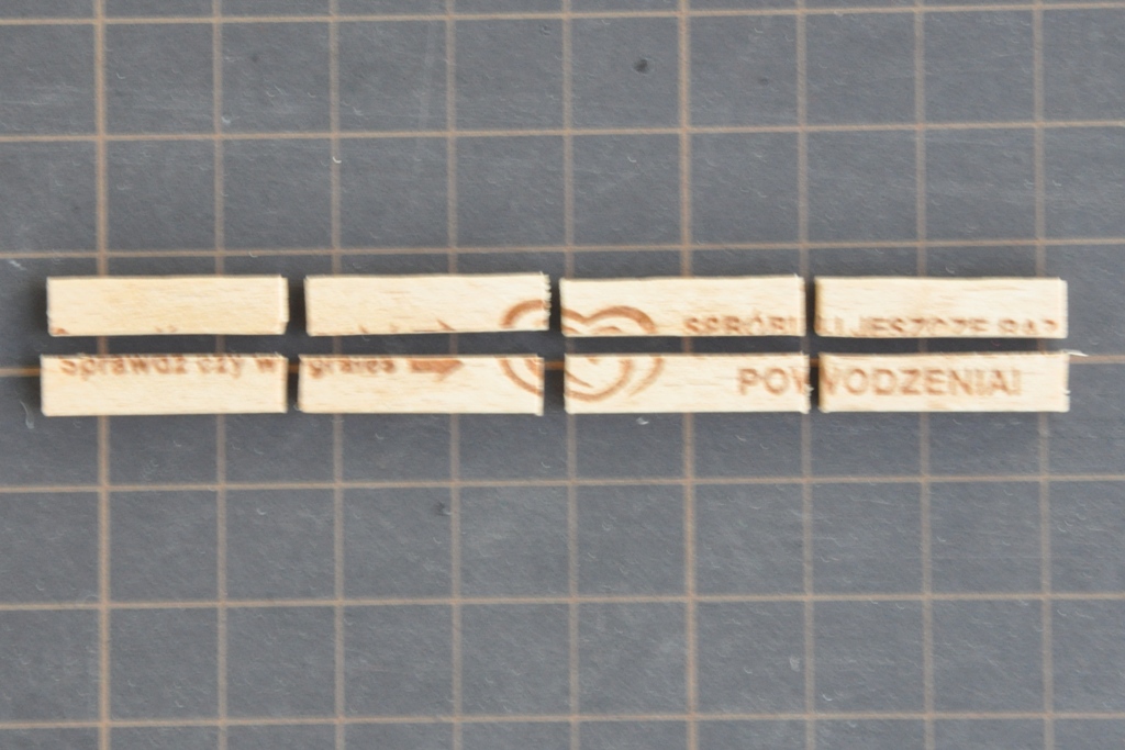 - oklejenie ścianki "deskami" i poczernienie ich (boczne deski wkleję po zamontowaniu ścianki na modelu)